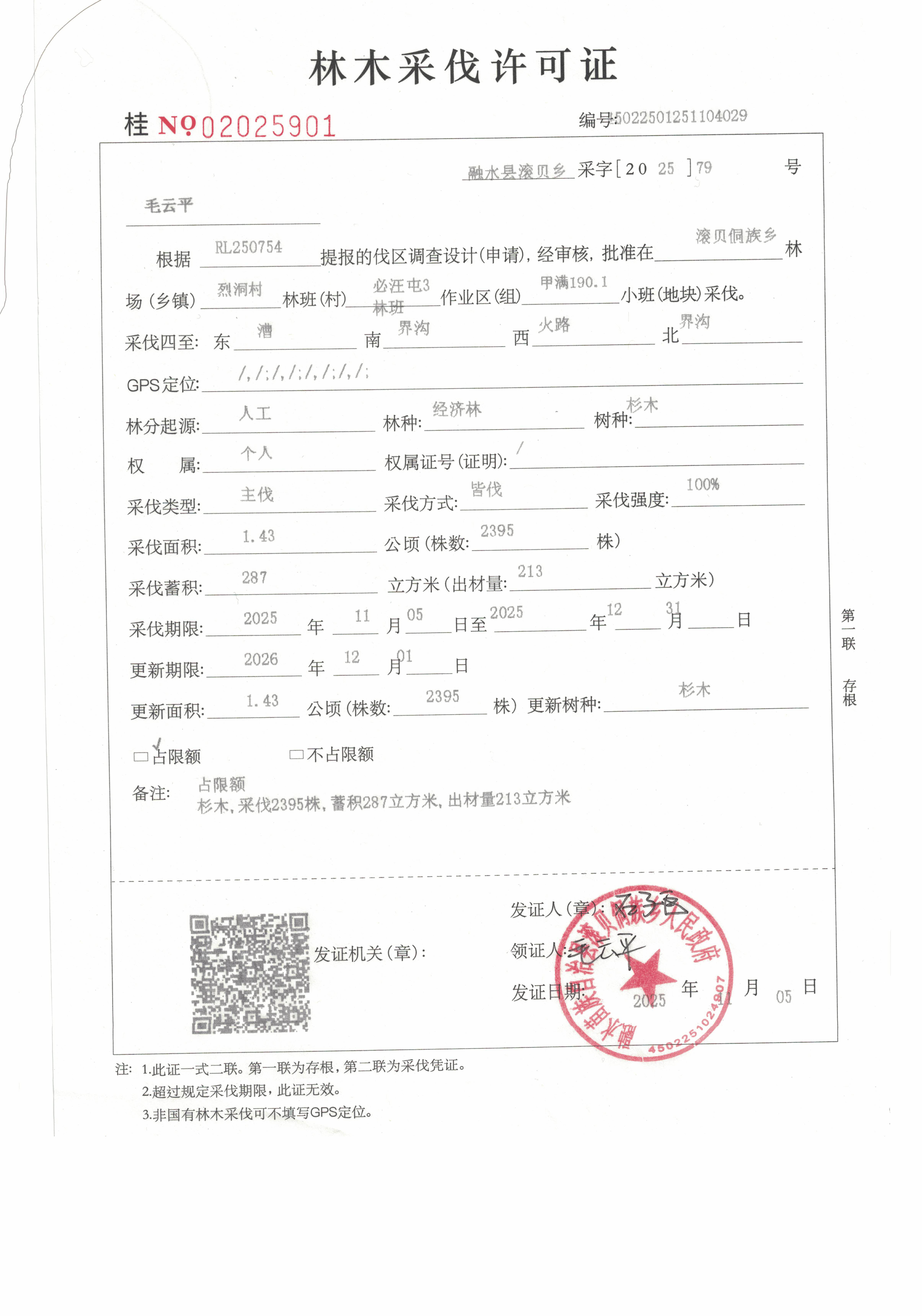 滚贝侗族乡林木采伐许可证