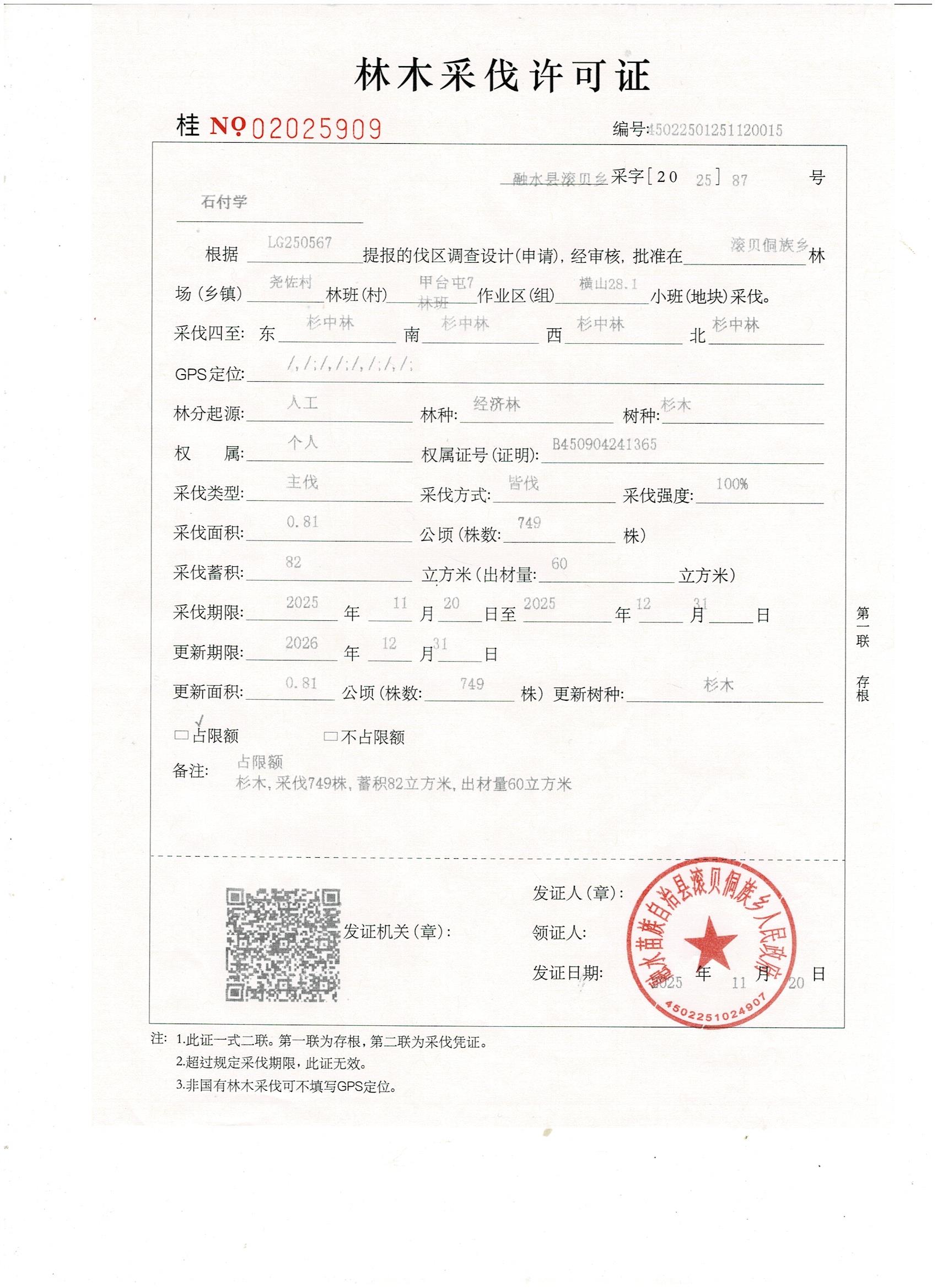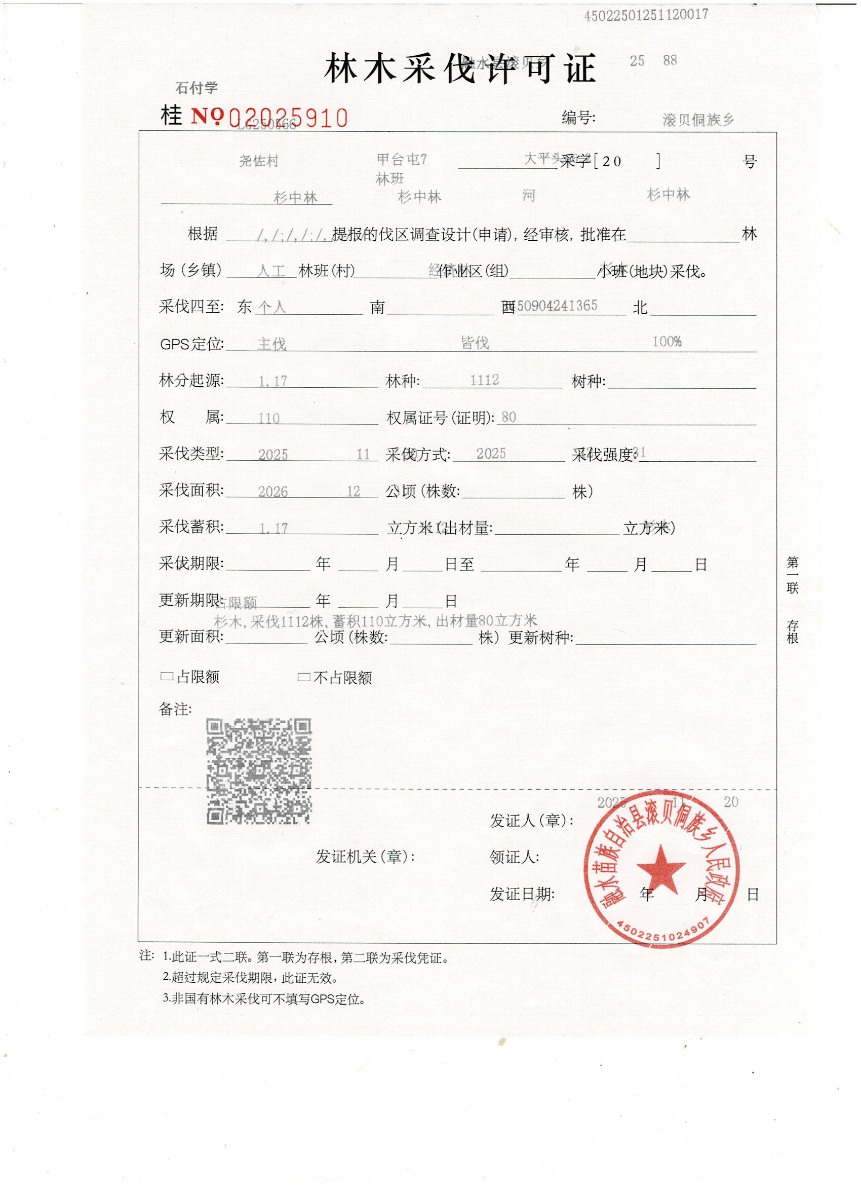 滚贝侗族乡林木采伐许可证