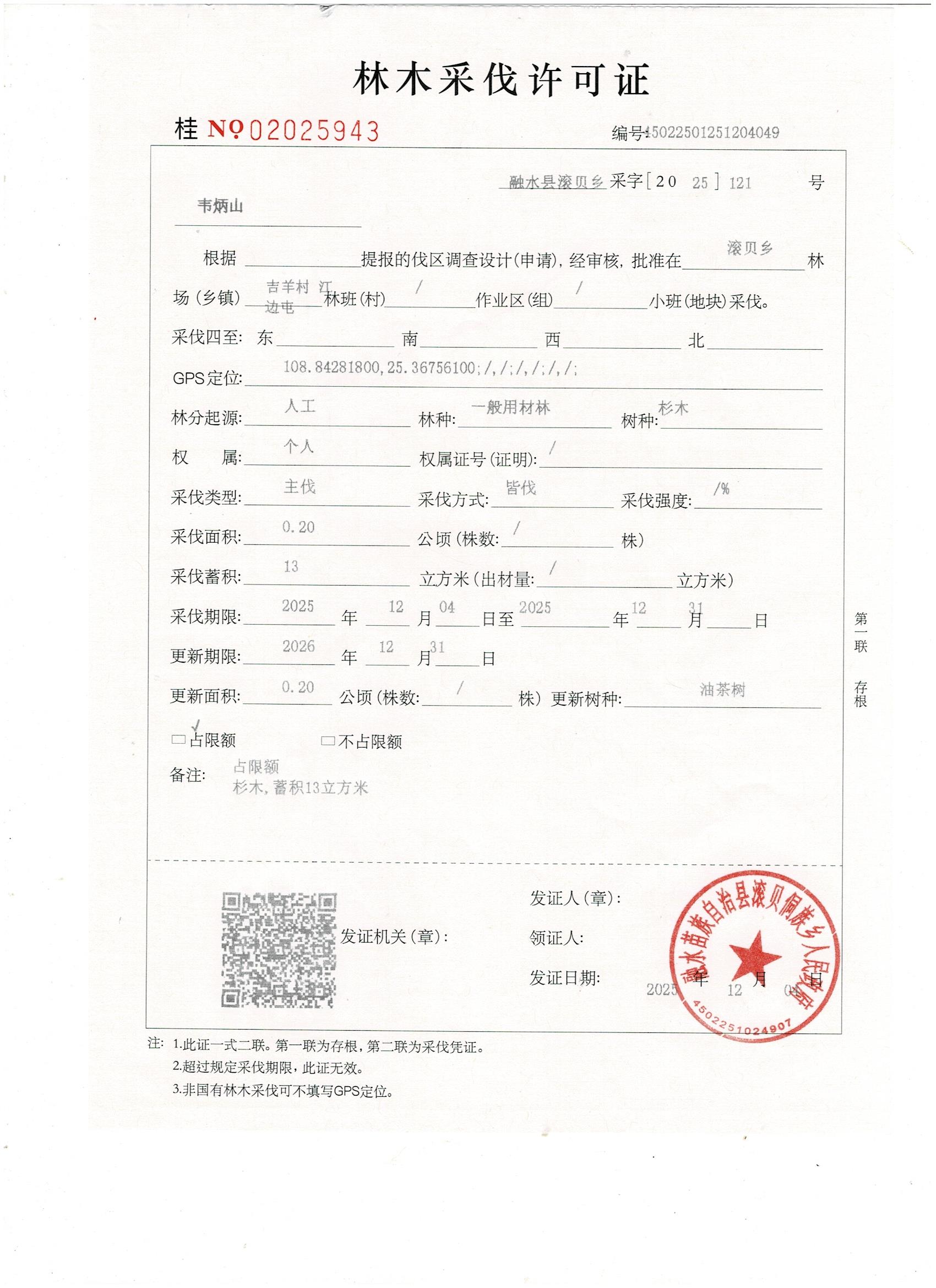 滚贝侗族乡林木采伐许可证20251204韦炳山