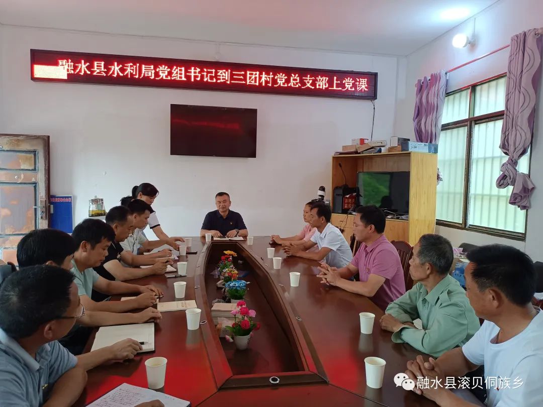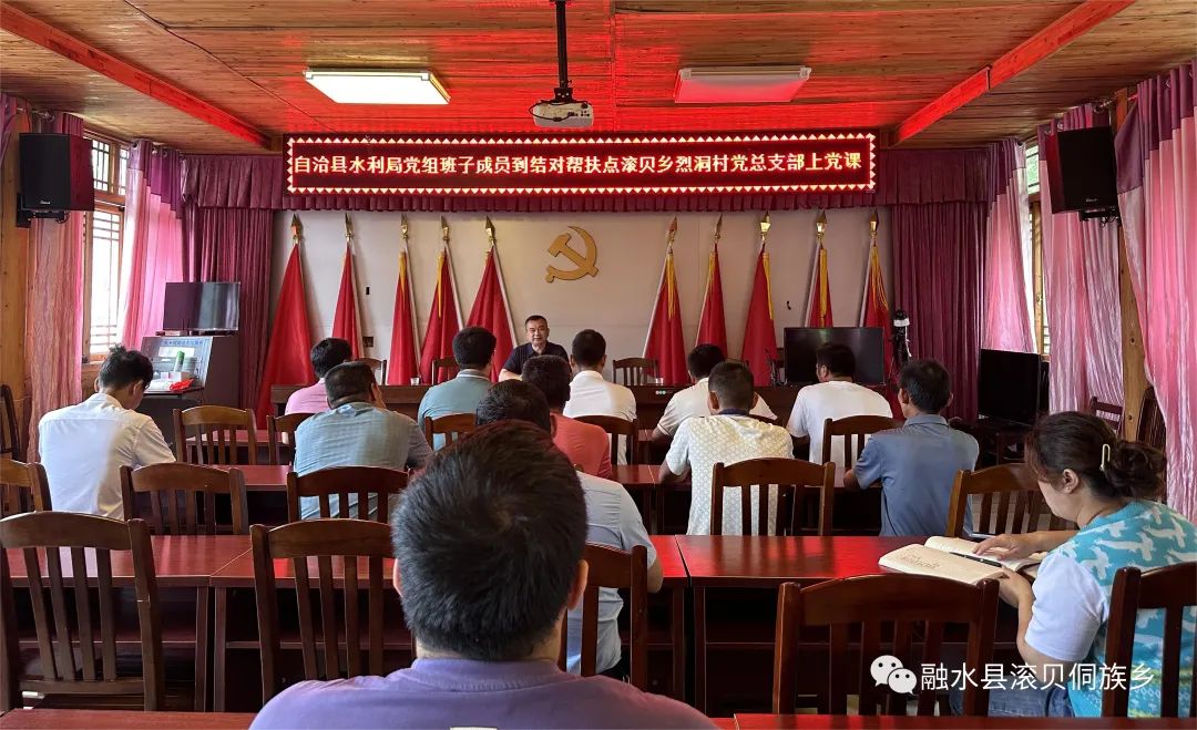 ▲自治县水利局党组书记徐承厚在滚贝侗族乡烈洞村、三团村上党课