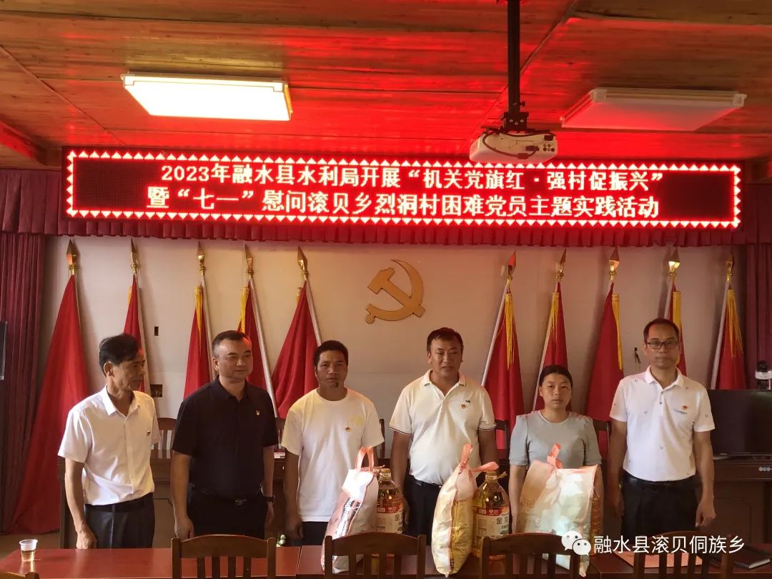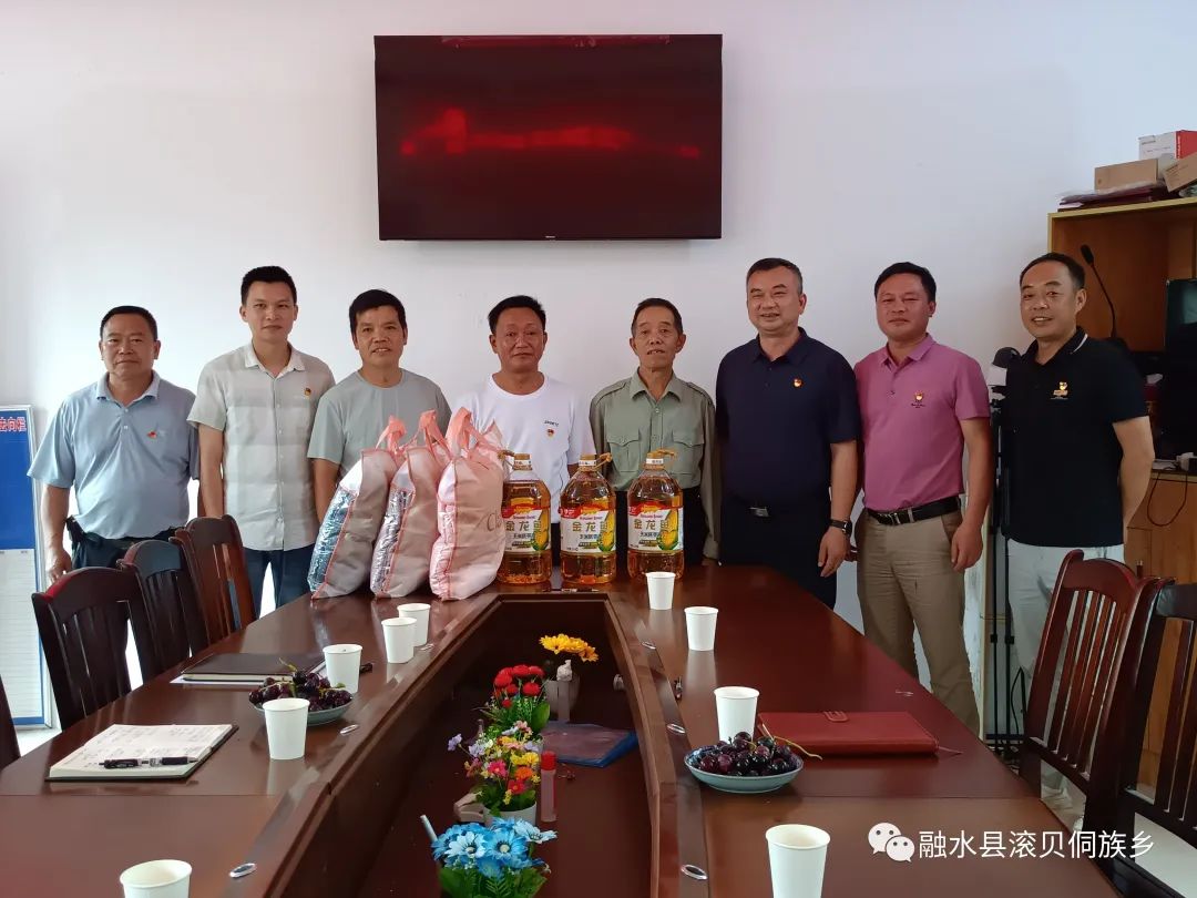 ▲自治县水利局党组书记徐承厚在滚贝侗族乡烈洞村、三团村发放慰问品