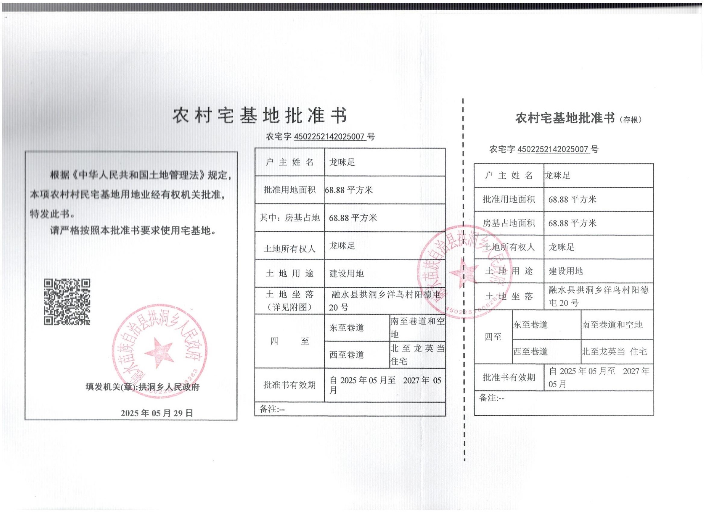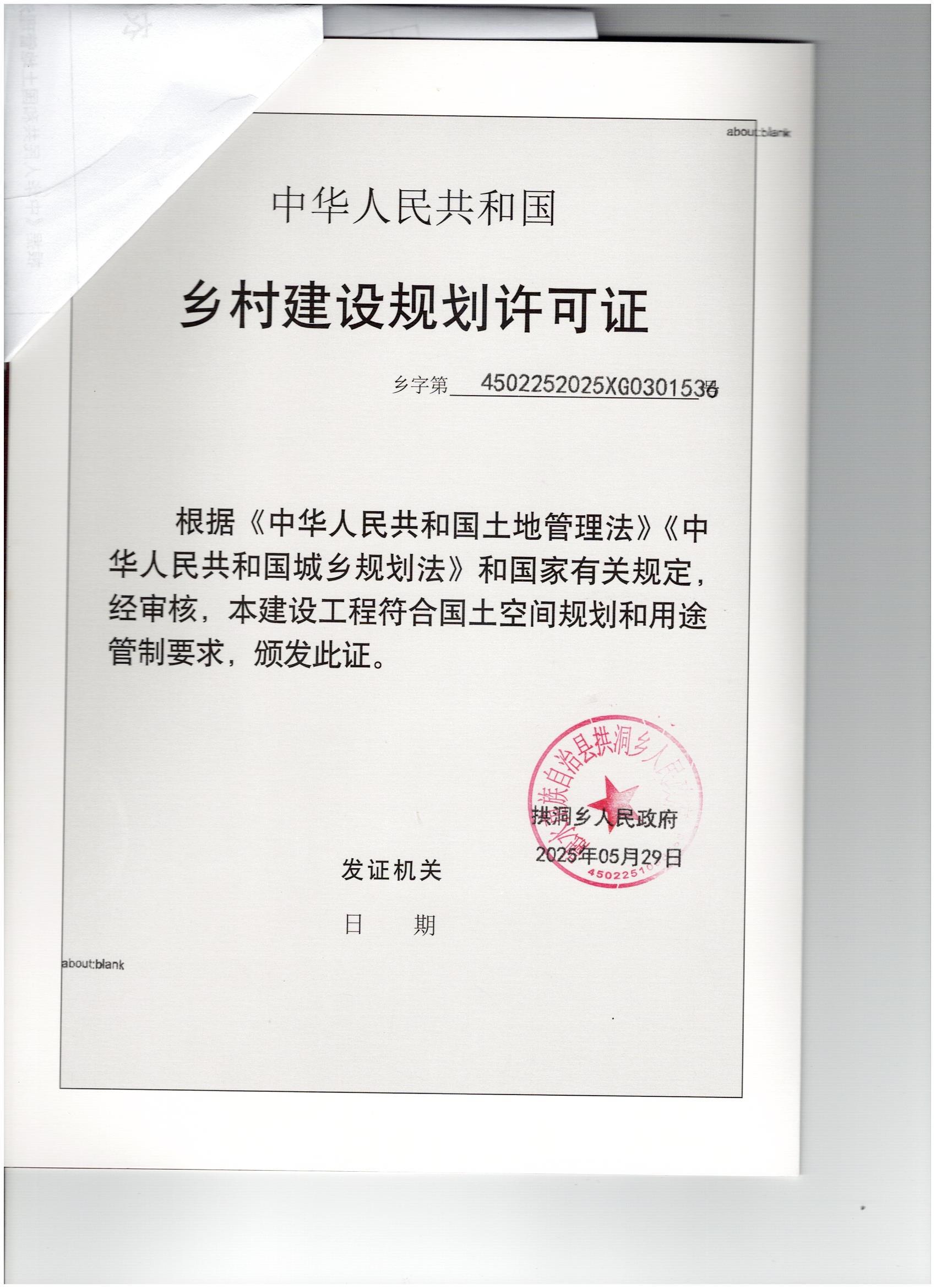 乡村建设规划许可证:乡字第4502252025XG0301536号