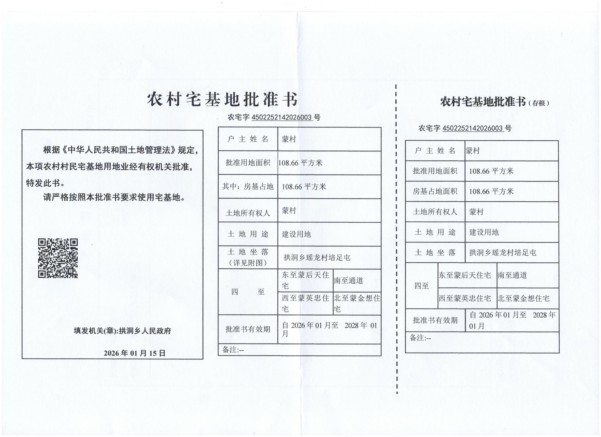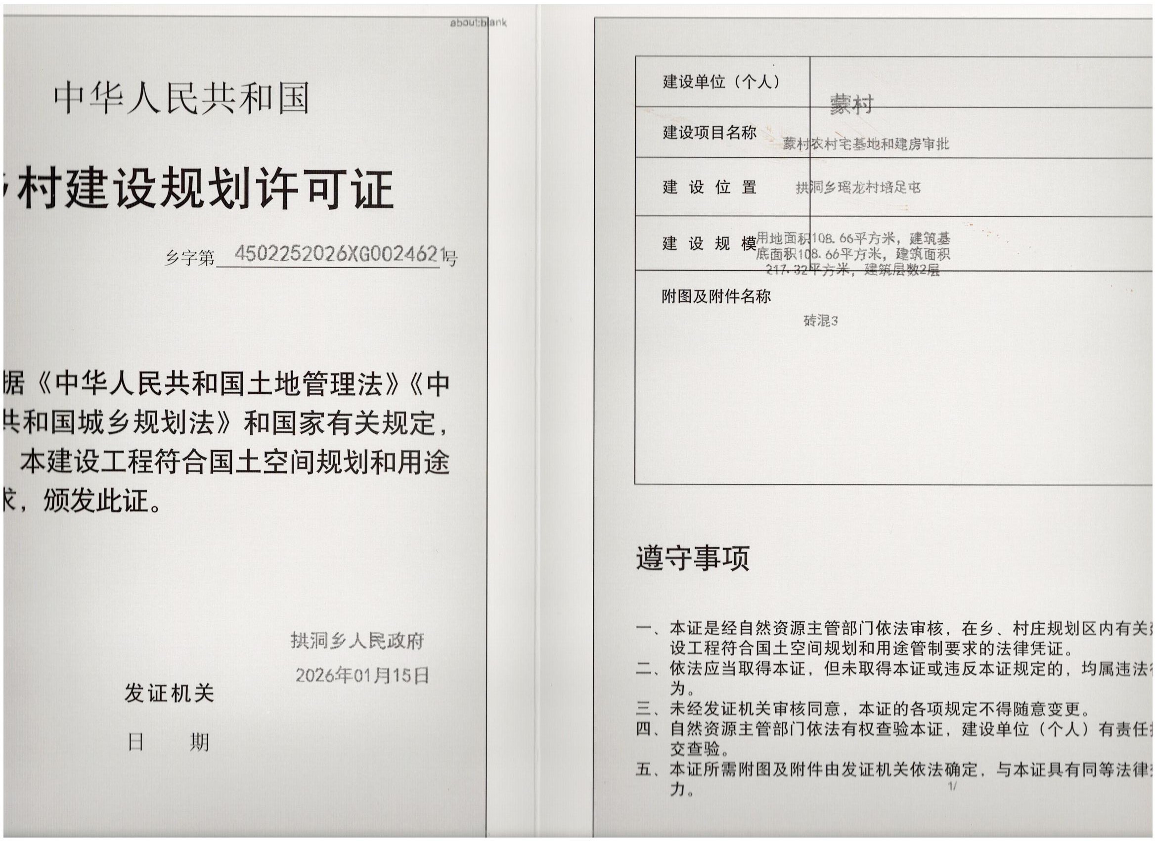 乡村建设规划许可证:乡字第4502252026XG0024621号公示