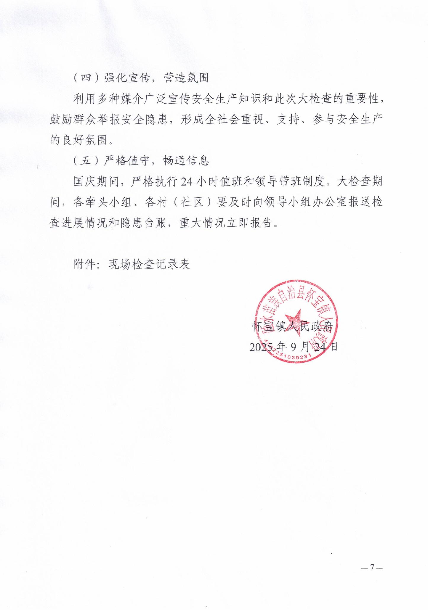 怀政发〔2025〕9号关于2025年中秋节、国庆节期间安全生产工作大检查的方案
