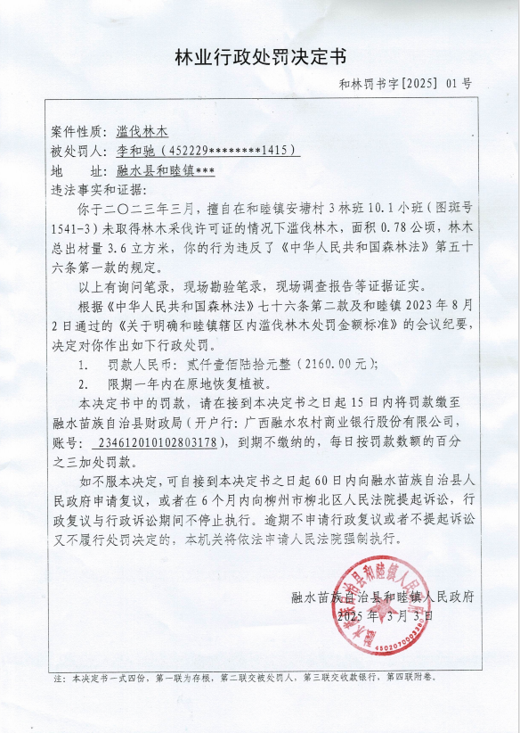林业行政处罚决定书(和林罚书字[2025]01号)