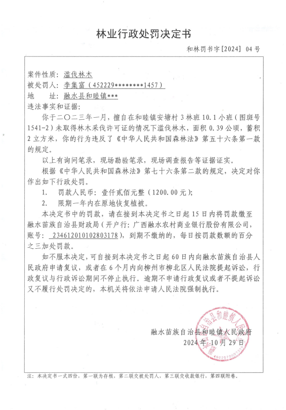 林业行政处罚决定书(和林罚书字[2024]04号)