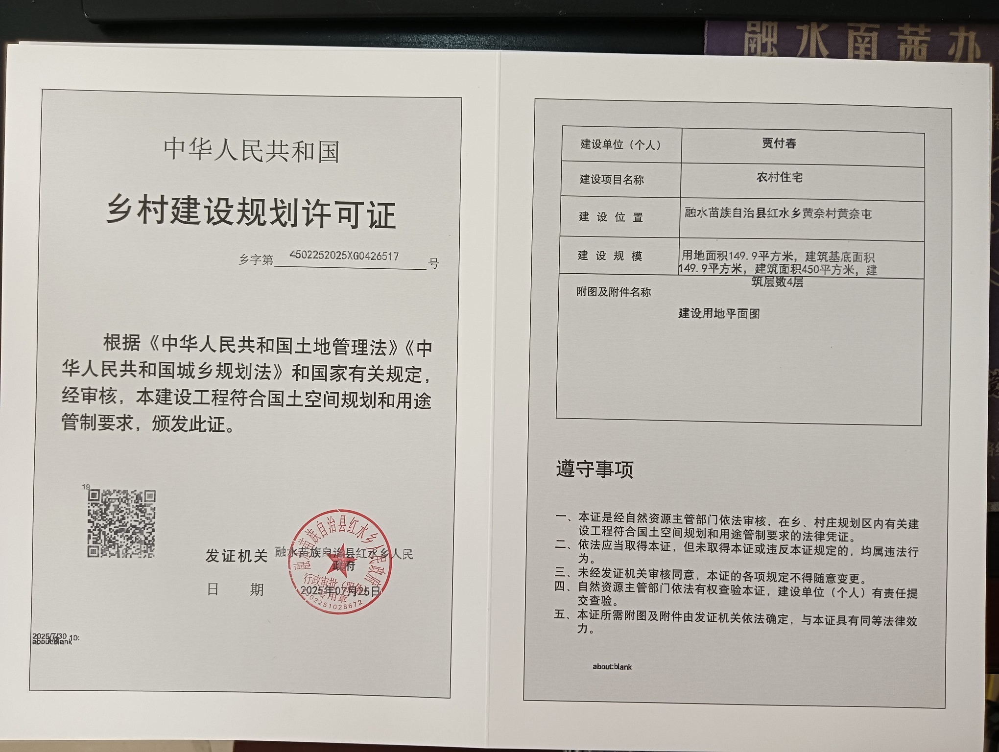 乡村建设规划许可证:(乡字第4502252025XG0426517号)公示