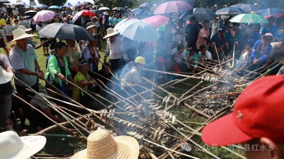 自2006年创办以来,高文村“烧鱼节”已从单一丰收庆典升级为特色文旅IP。本届活动在保留摸禾花鲤、烤田鲤、芦笙踩堂等传统项目基础上,新增民族舞蹈赛、拔河竞技、篮球比赛等互动环节,让游客既能品尝簸箕宴的鲜香,又能沉浸式体验苗族农耕文化的魅力。