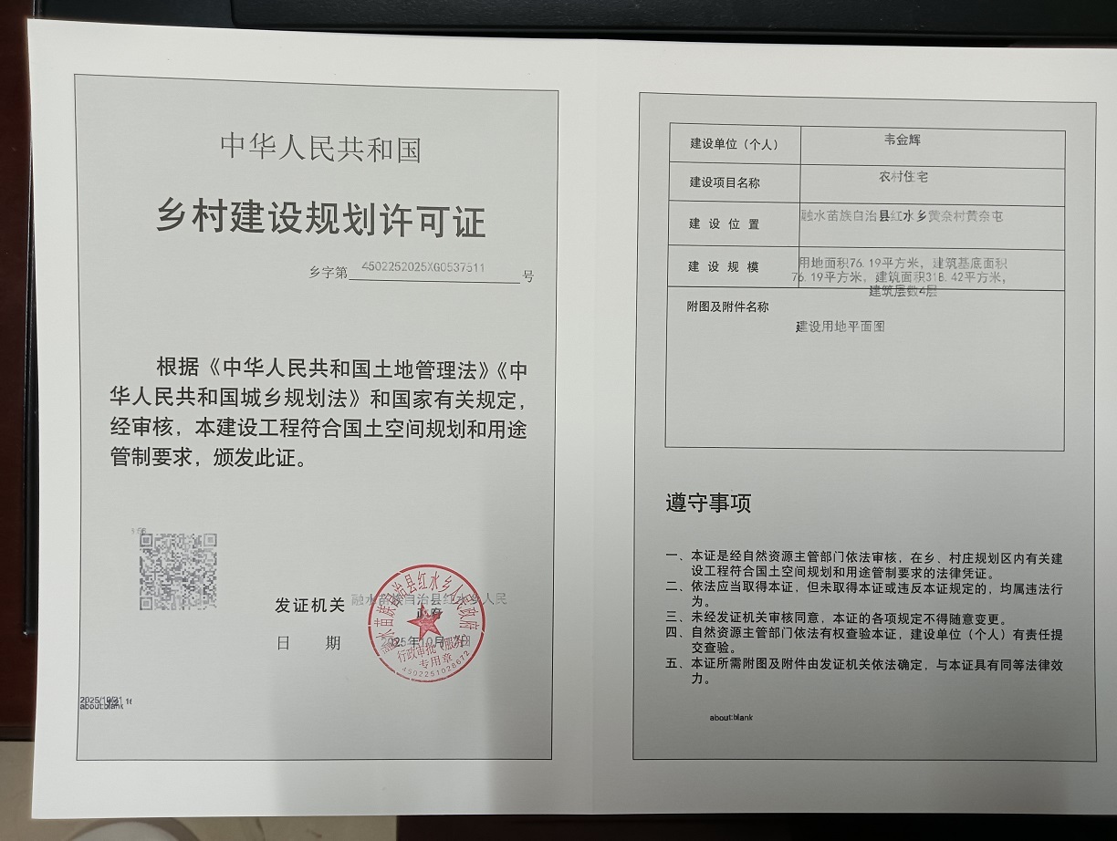 乡村建设规划许可证:(乡字第4502252025XG0537511号)公示