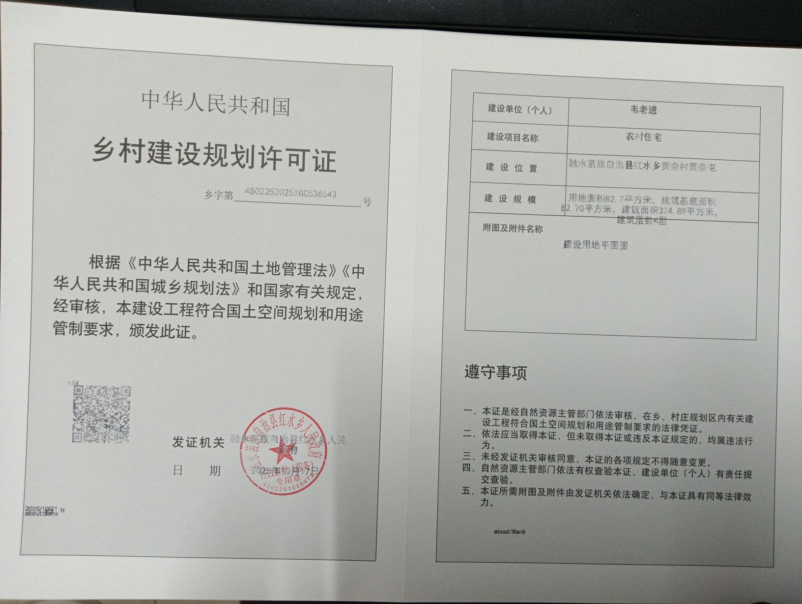 乡村建设规划许可证:(乡字第4502252025XG0536543号)公示