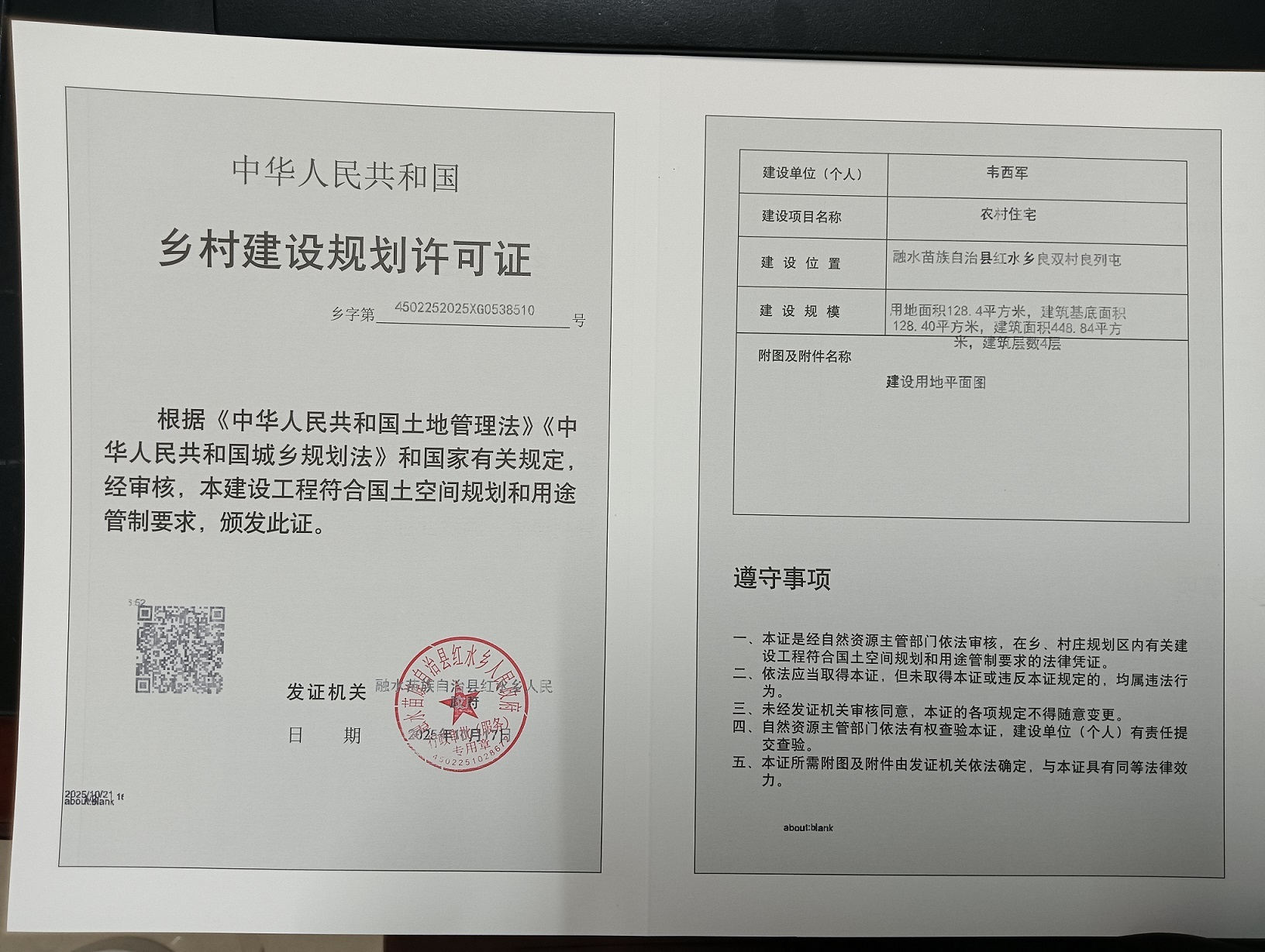 乡村建设规划许可证:(乡字第4502252025XG0538510号)公示