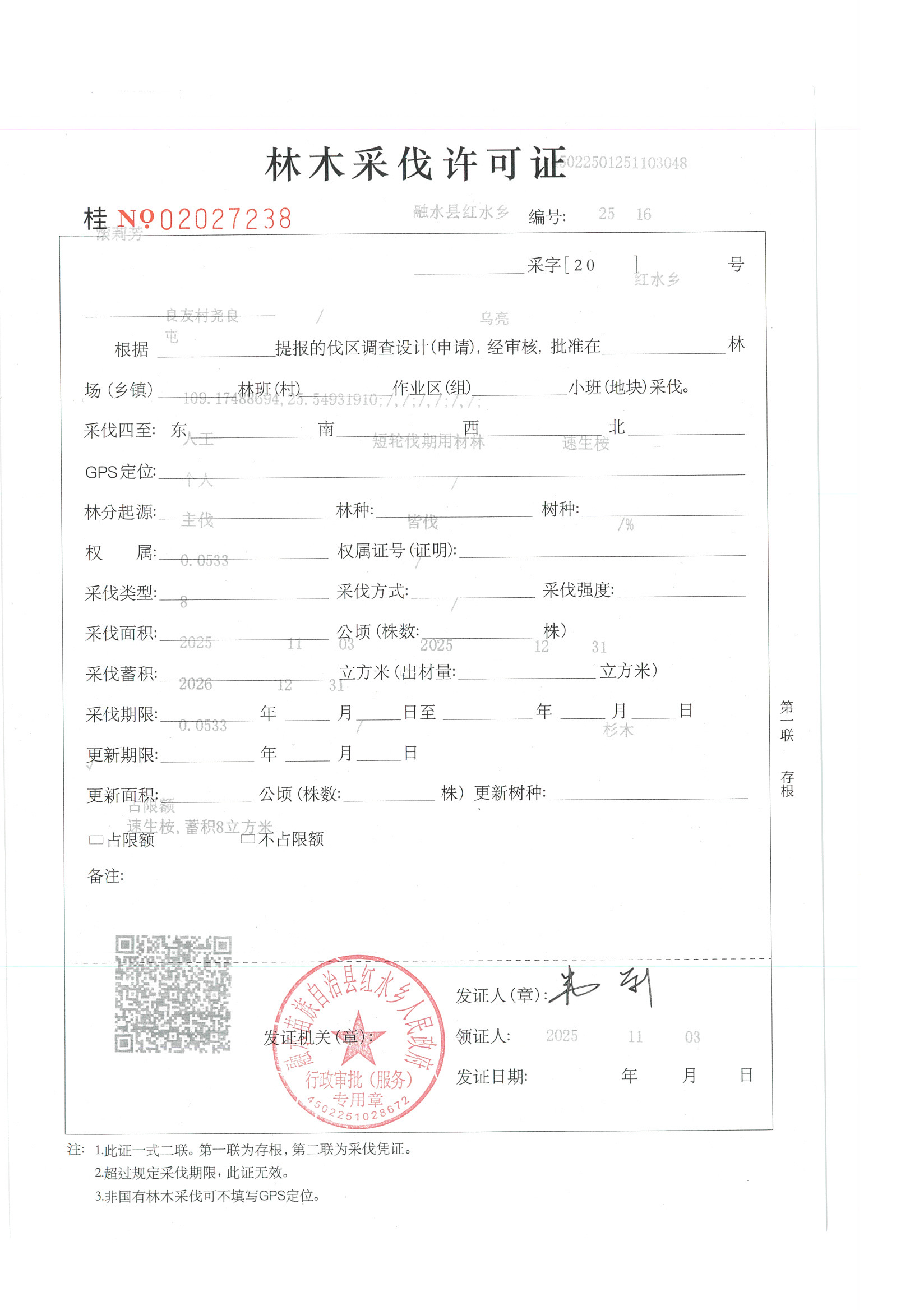 林木采伐许可证:滚莉芳 (桂NO 02027238)
