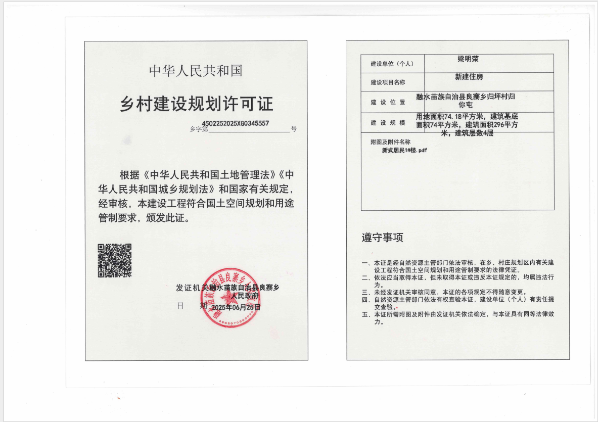 乡村建设规划许可证(乡字第:4502252025XG0345557号)公示