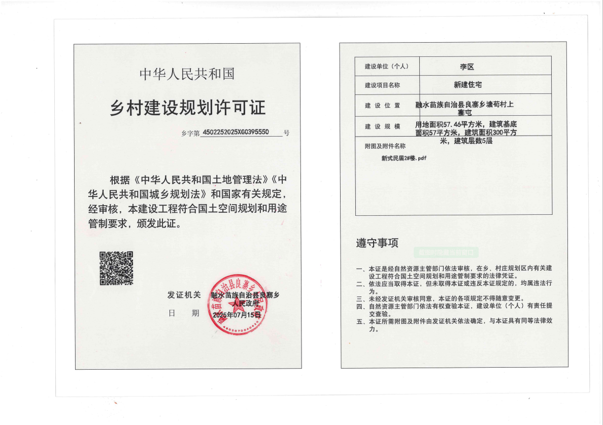 乡村建设规划许可证(乡字第:4502252025XG0395550号)公示