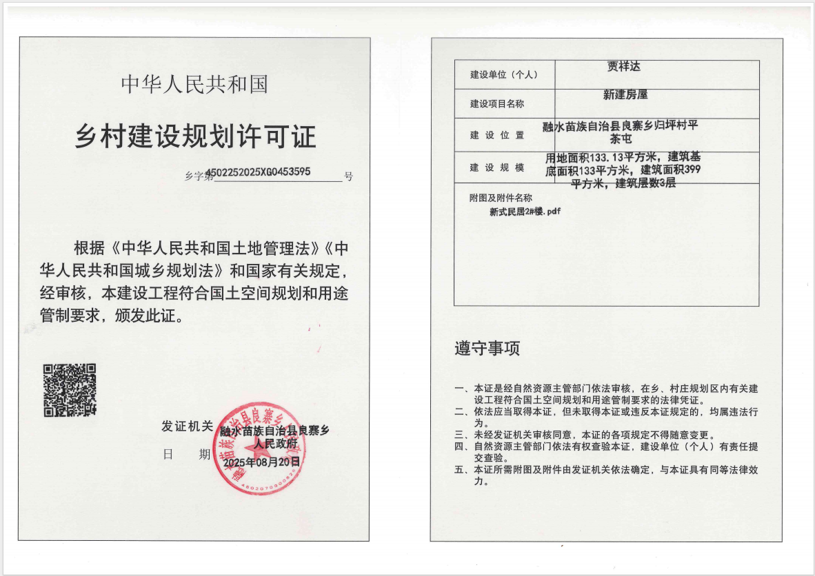 乡村建设规划许可证(乡字第:4502252025XG0453595号)公示