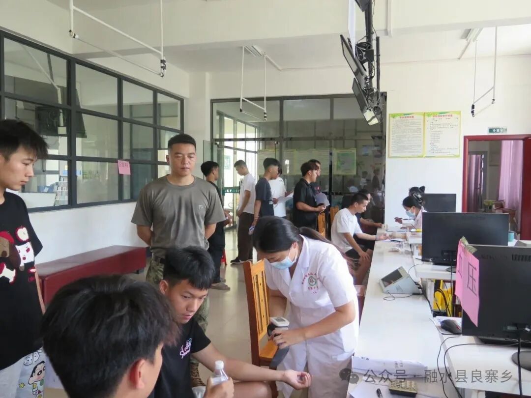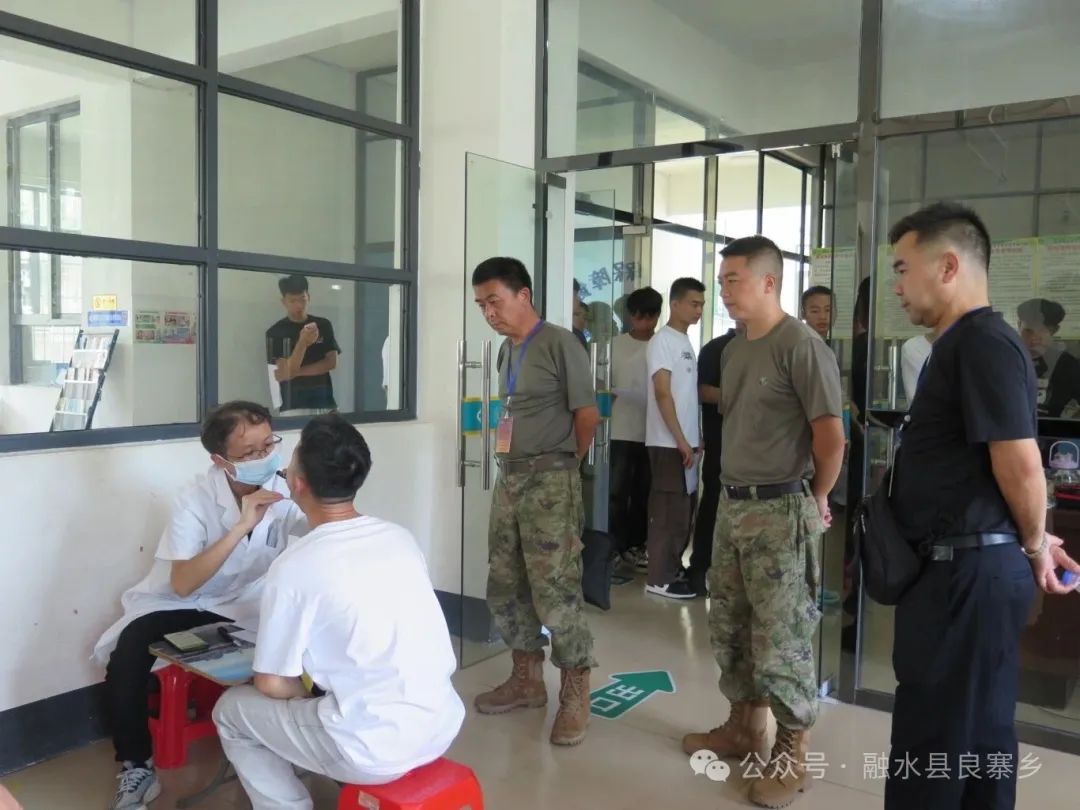 7月31日,良寨乡武装部组织适龄青年到乡卫生院,参加2025年秋季征兵初检。
