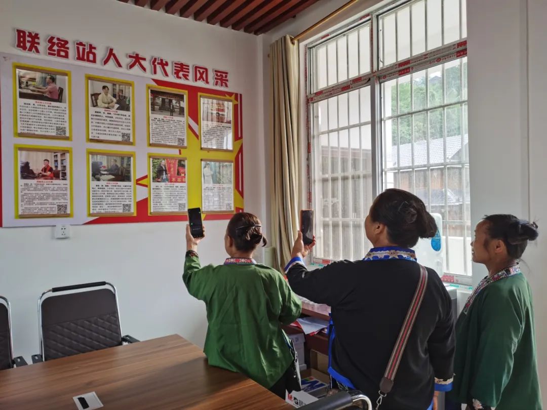 在微信扫码平台设立“代表履职风采”“联络站情况简介”“苗族‘埋岩’文化”“留言板”等板块、打造“代表电子名片”、构建“线上+线下”接访服务平台,良寨乡人大创新打造“智慧人大联络站”,便利群众反映问题、提意见,助推联络站更好地成为代表服务群众、依法履职、推进民生实事的好平台。