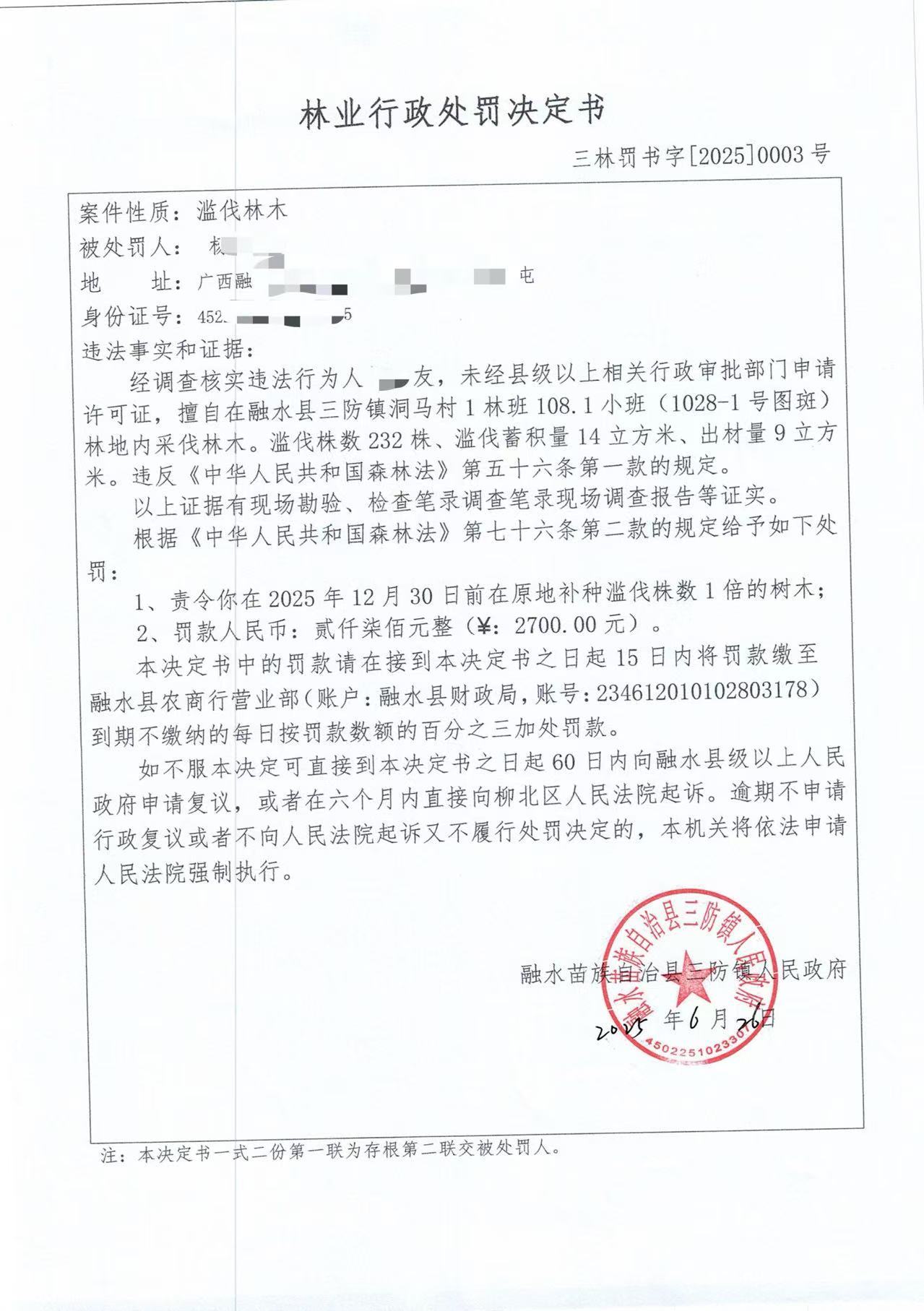 林业行政处罚决定书(三林罚书字【2025】0003号)