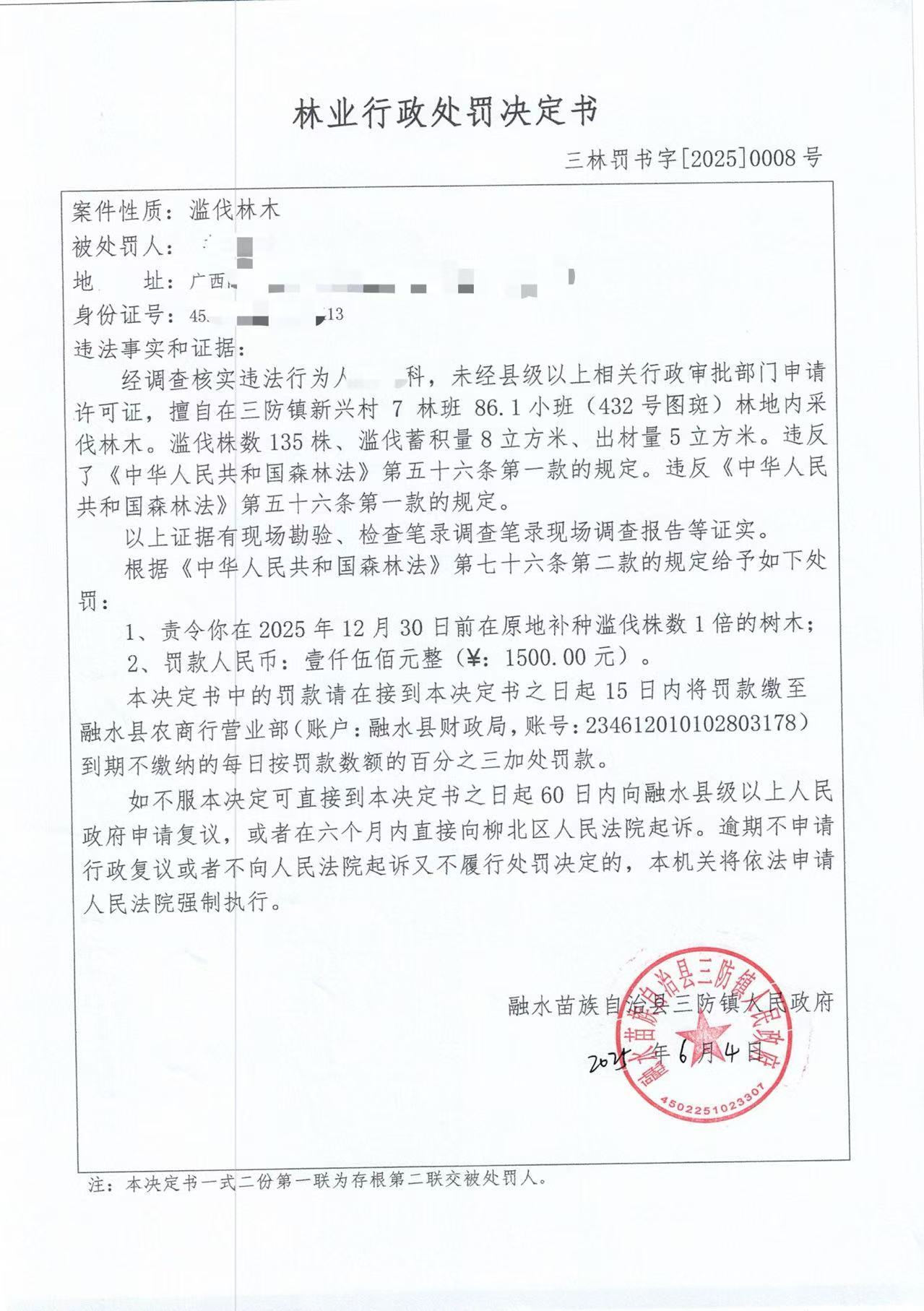 林业行政处罚决定书(三林罚书字【2025】0008号)