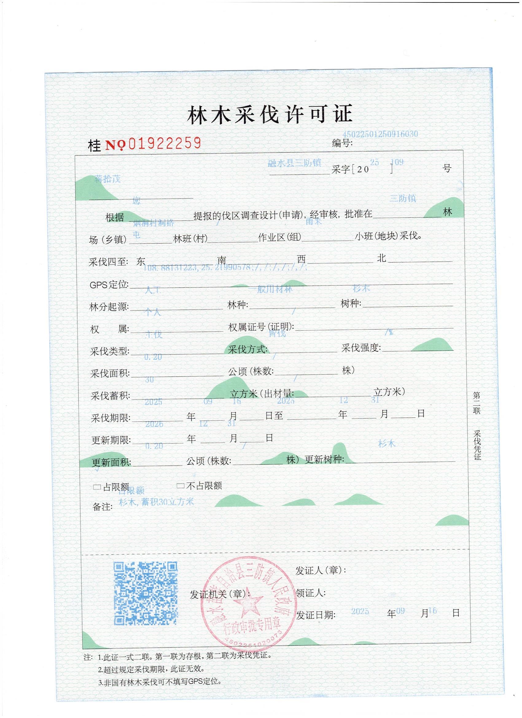 林木采伐证:蒋拾茂(桂NO.01922259)