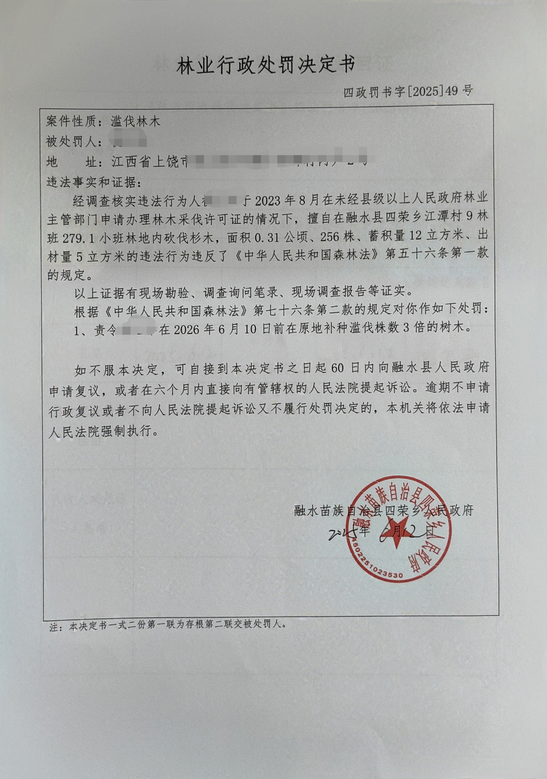林业行政处罚决定书(四政罚书字[2025]49号)