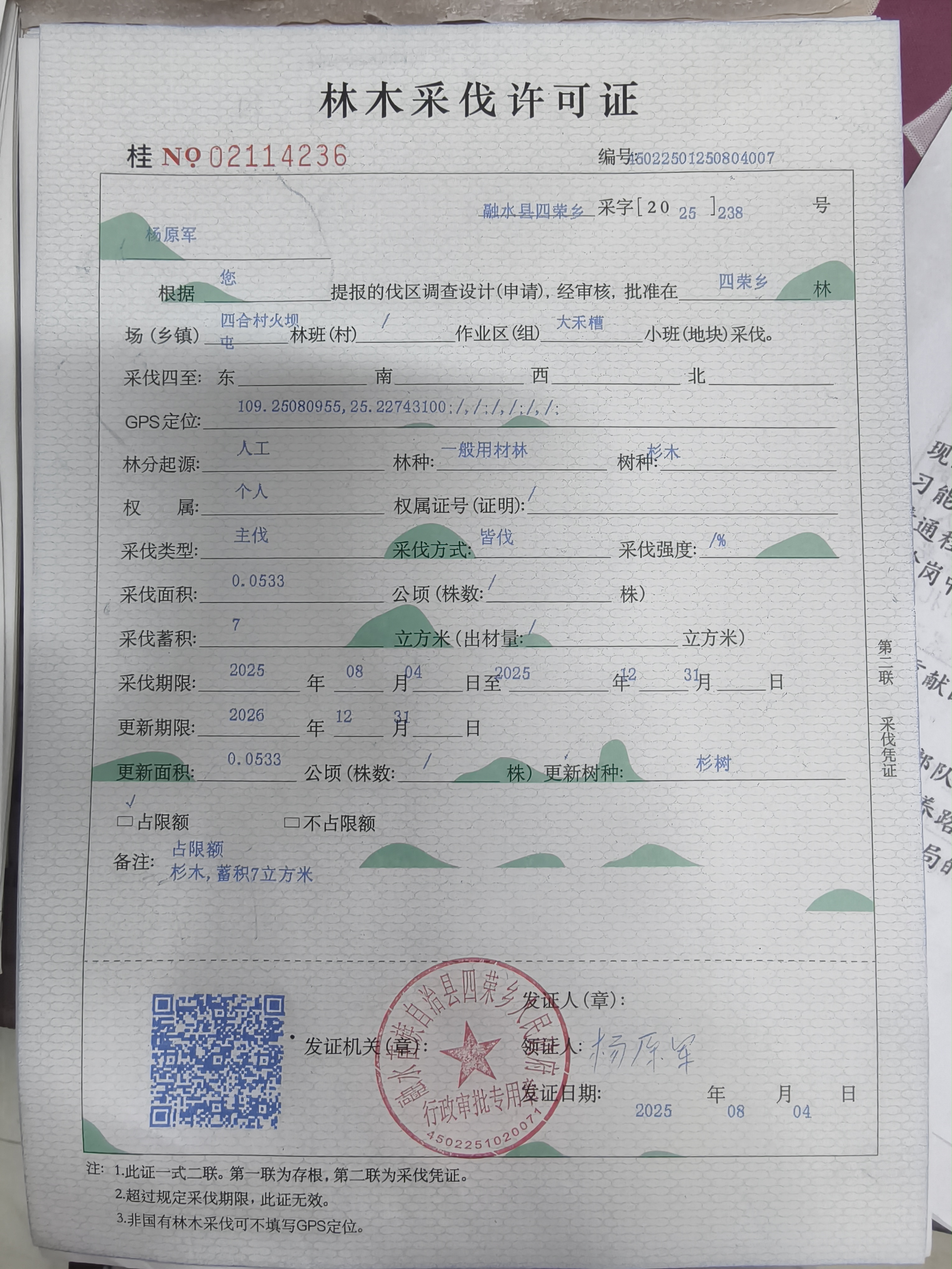 林木采伐许可证