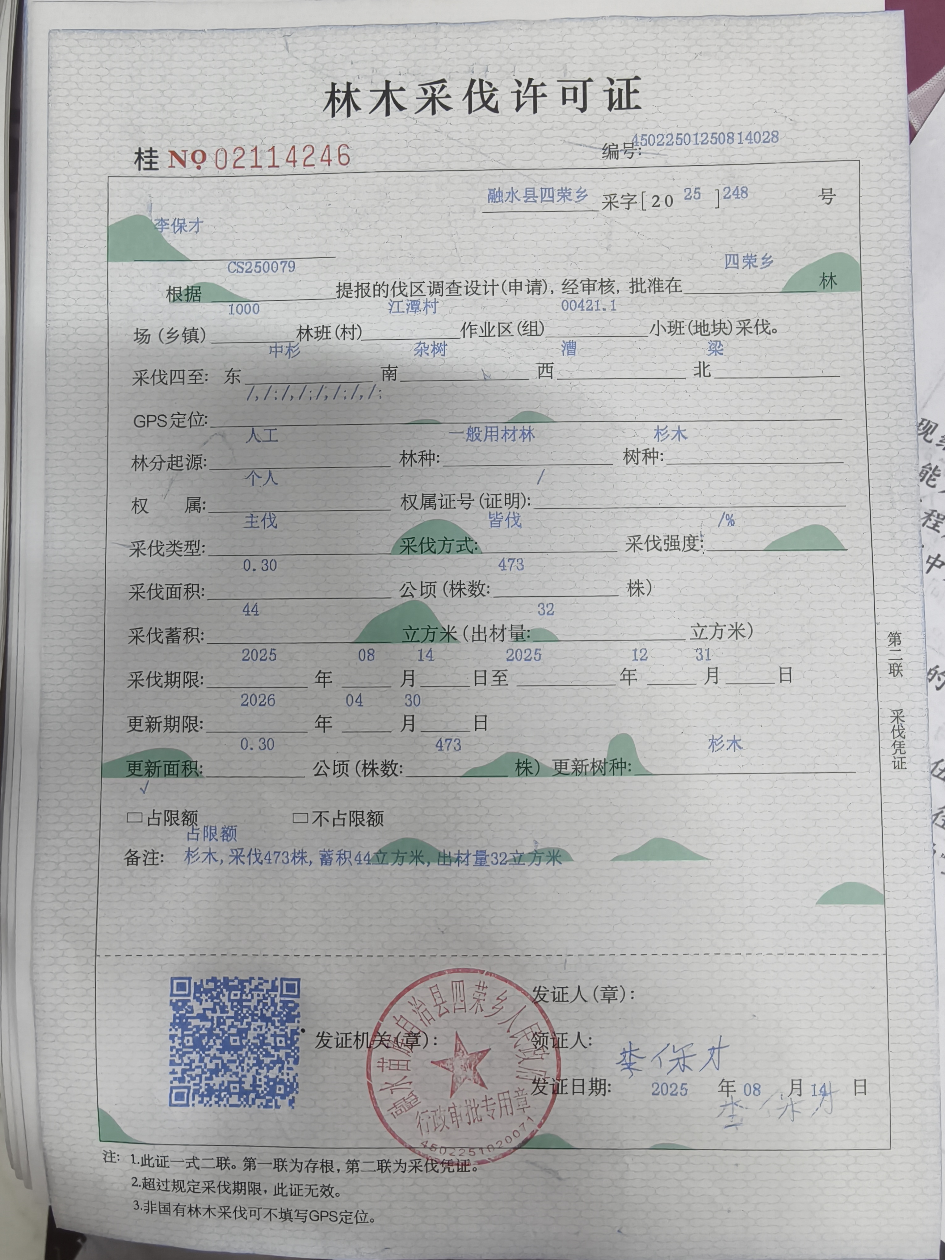 林木采伐许可证