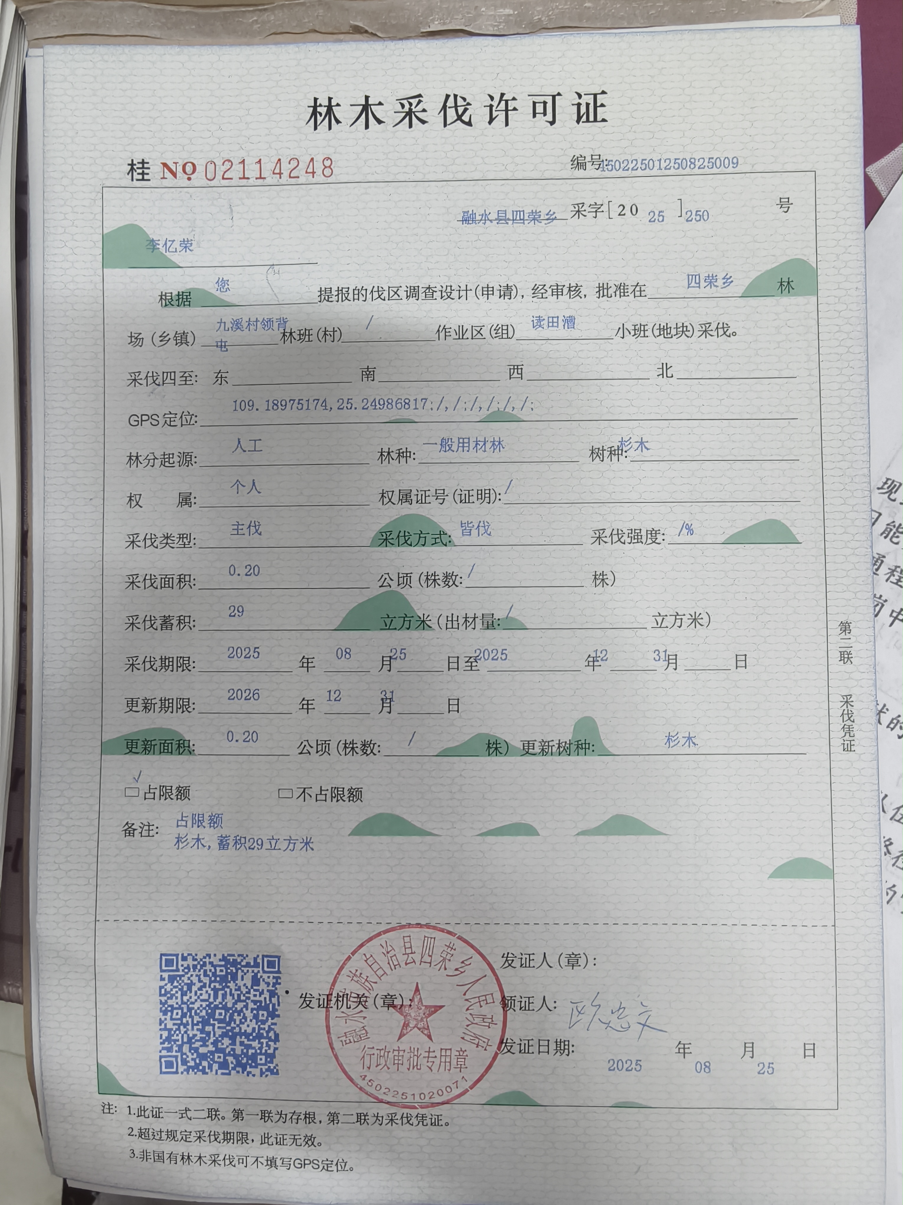 林木采伐许可证