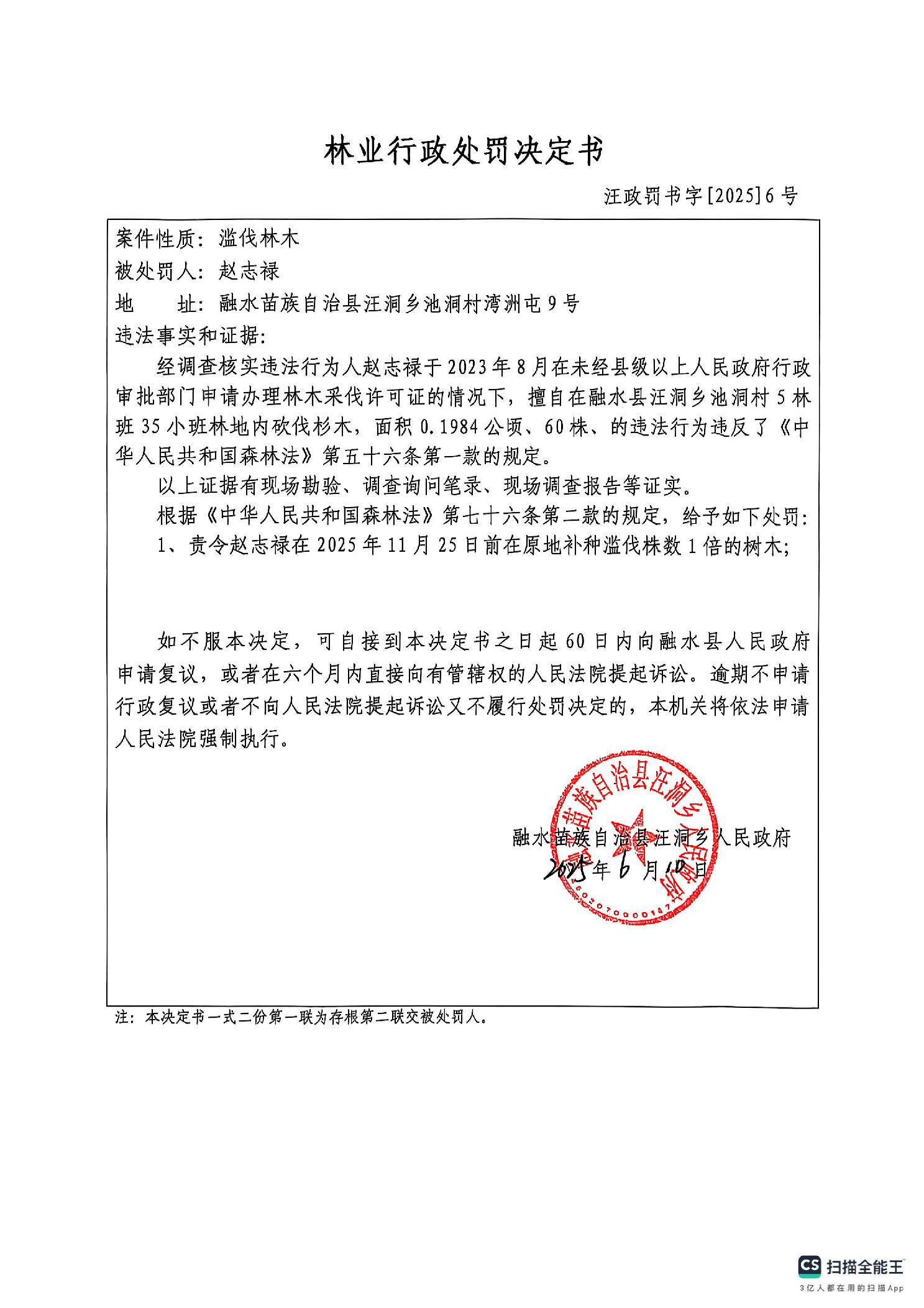 林业行政处罚决定书 汪政罚书字〔2025〕6号