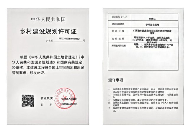 乡村建设规划许可证(乡字第:4502252025XG0243521号)公示