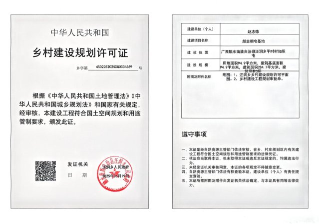 乡村建设规划许可证(乡字第:4502252025XG0334569号)公示
