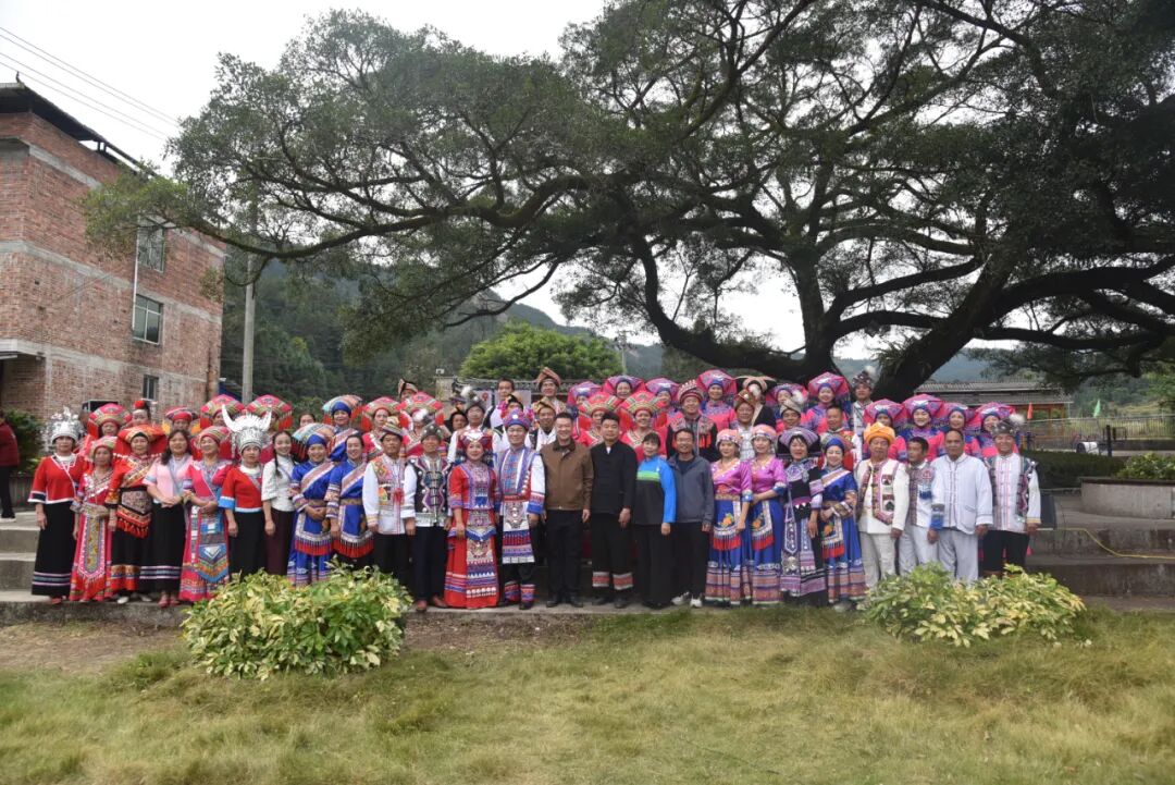乡党委副书记、乡长邓钧文,乡党委副书记覃贻辉与全体歌友、演员合影,并约定来年不见不散▲