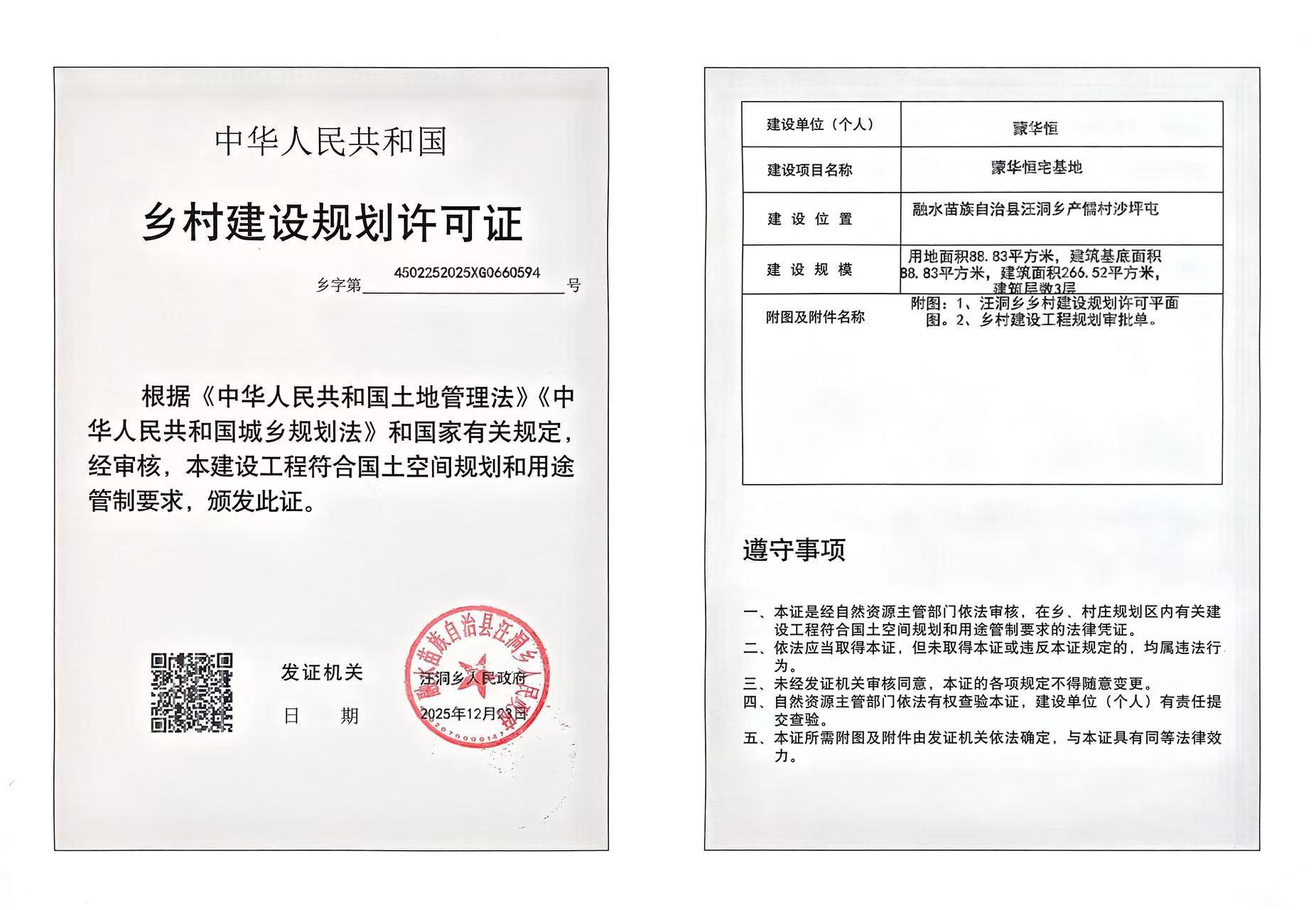 乡村建设规划许可证(乡字第:4502252025XG0660594号)公示
