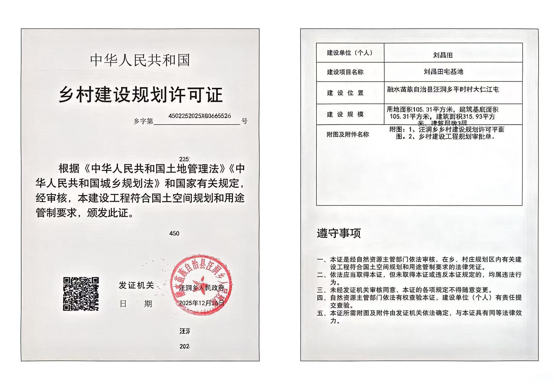 乡村建设规划许可证(乡字第:4502252025XG0665526号)公示