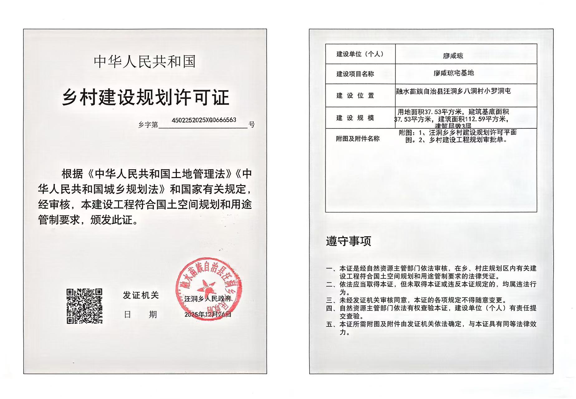 乡村建设规划许可证(乡字第:4502252025XG0666563号)公示