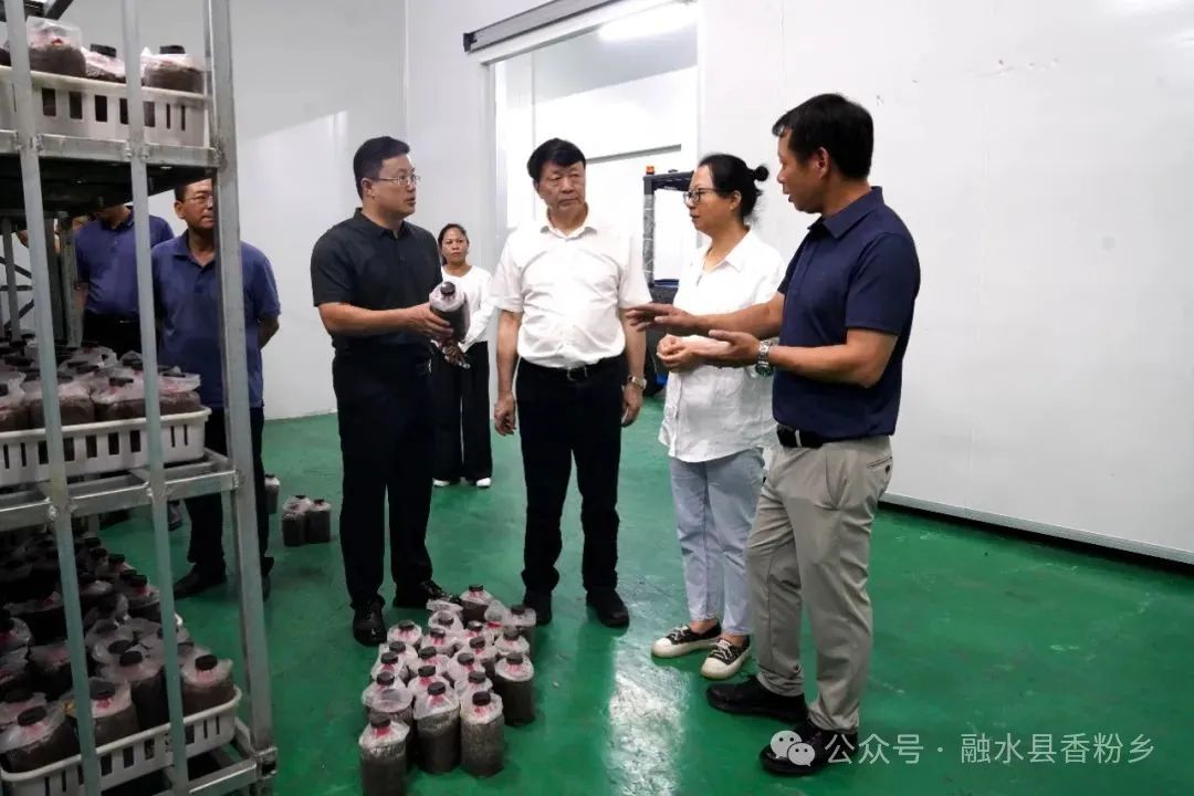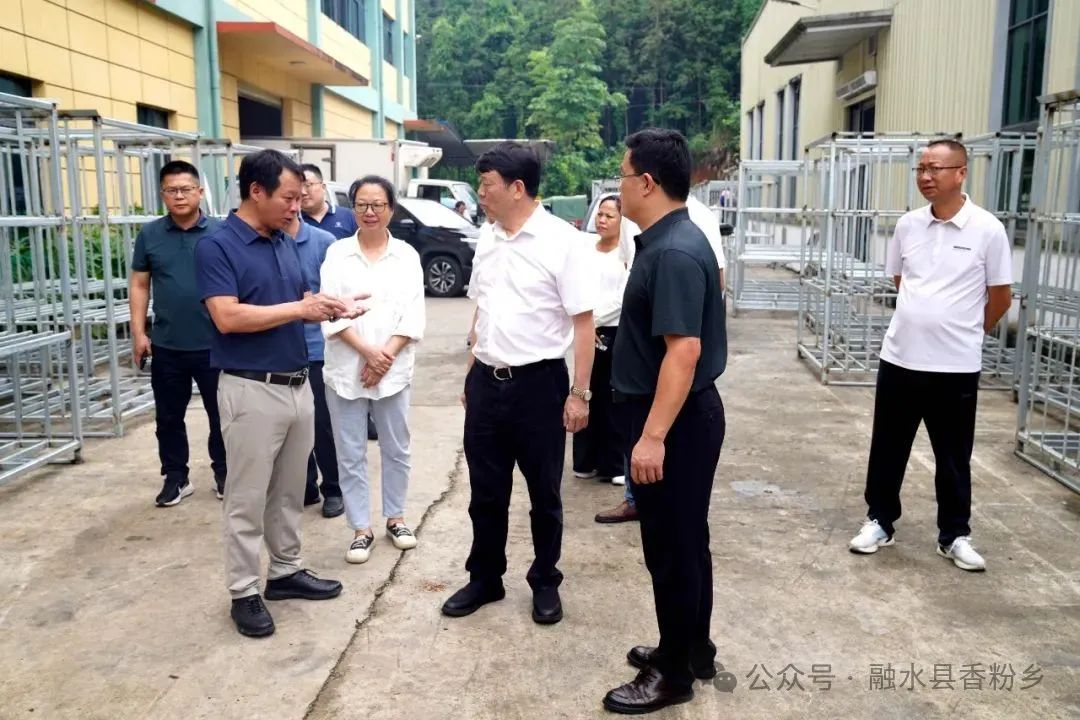 在香粉乡,陈鸿宁一行来到广西永富生态农业有限公司和雨卜村村集体经济项目地,视察企业生产运营情况和项目建设进度,听取企业发展及项目建设等情况的汇报。