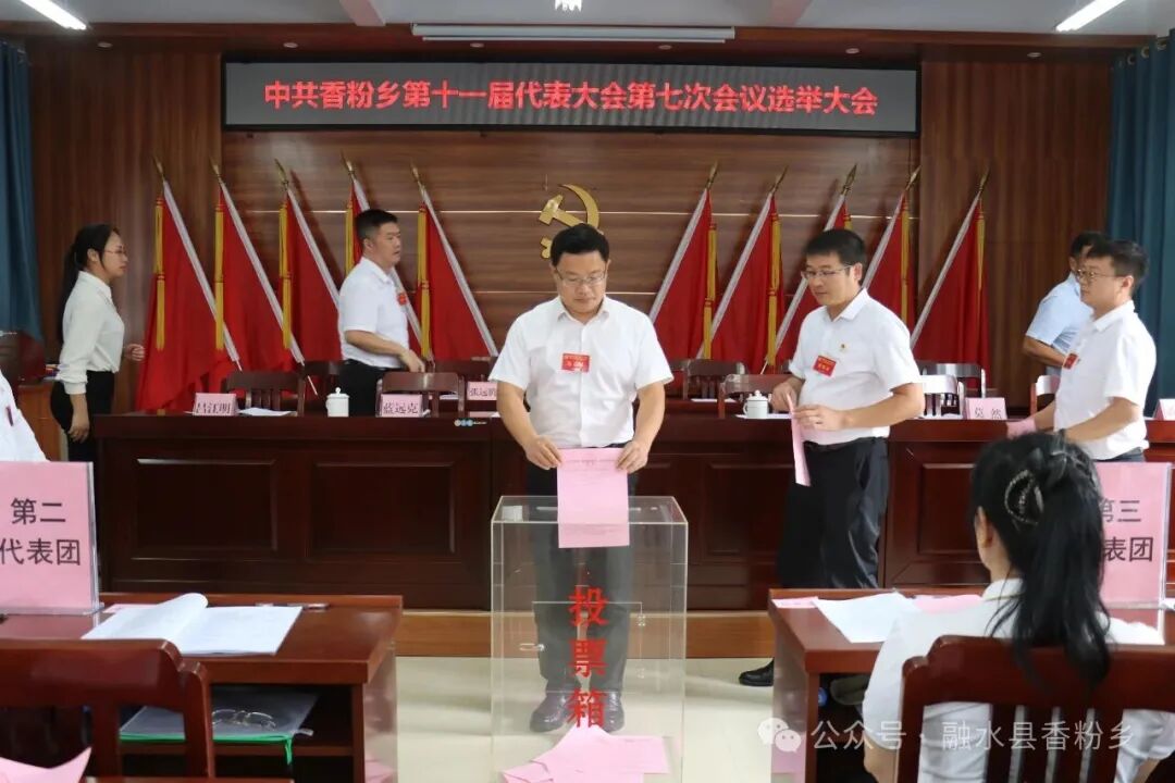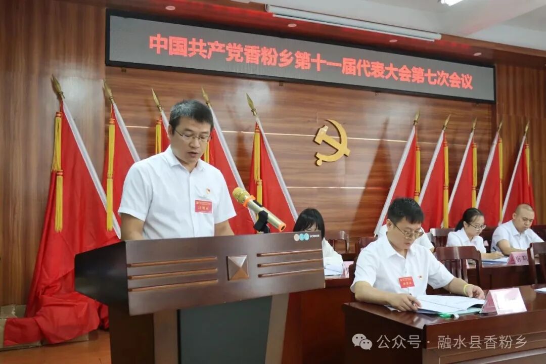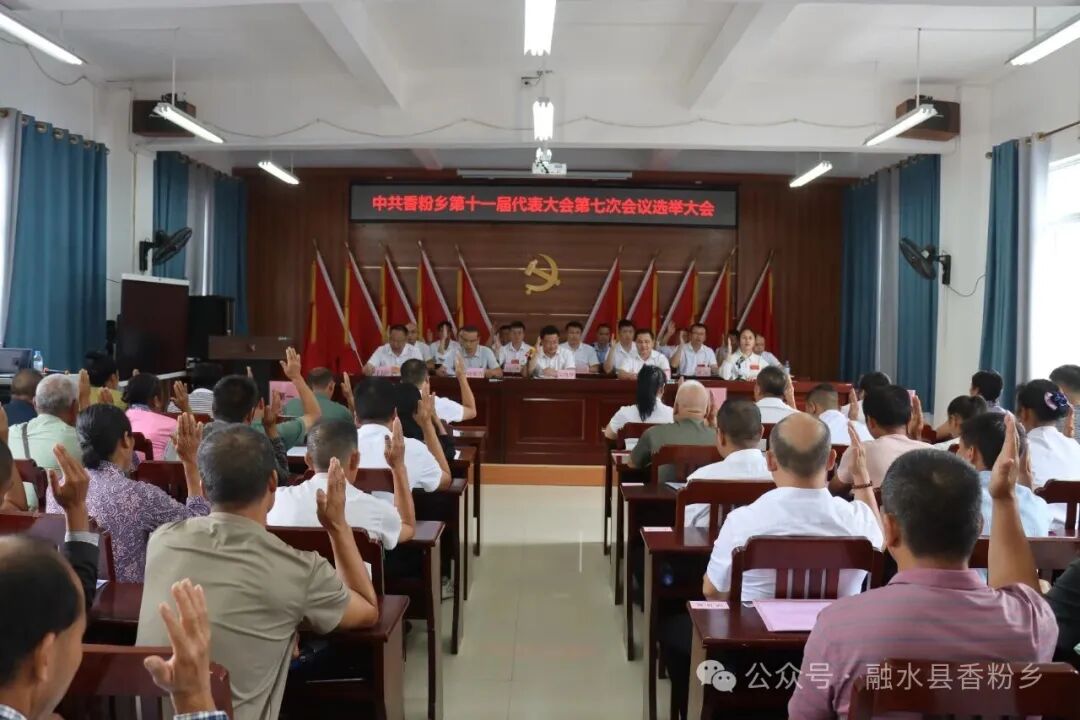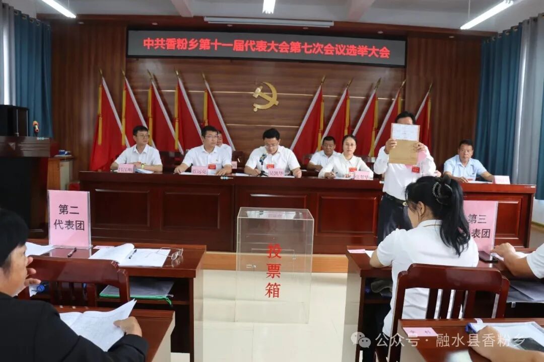 10月15日,中国共产党香粉乡第十一届代表大会第七次会议胜利召开,参加会议的党代表64名,列席人员21名。