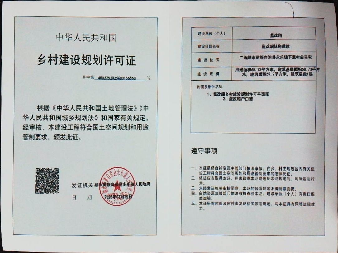 乡村建设规划许可证:(乡字第4502252025XG0156560号)公示