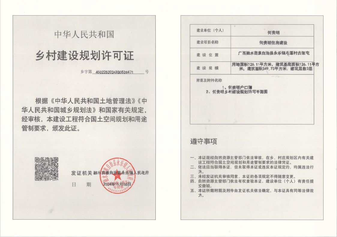 乡村建设规划许可证:(乡字第4502252024XG0526471号)公示