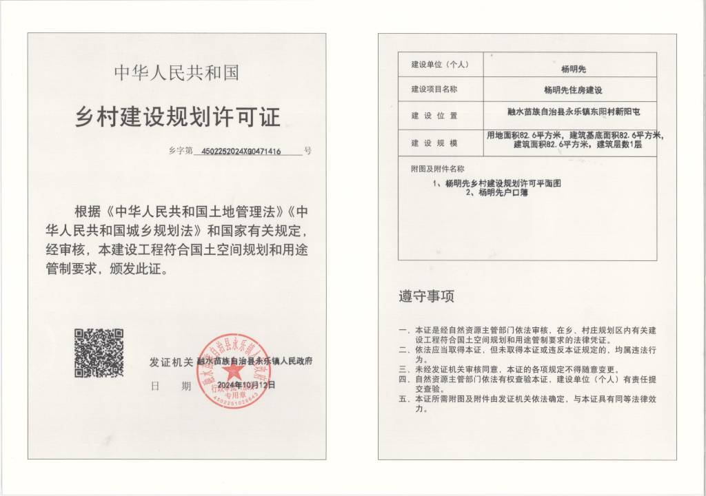 乡村建设规划许可证:(乡字第4502252024XG0471416号)公示