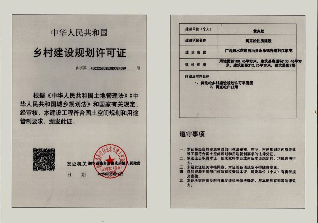 乡村建设规划许可证:(乡字第4502252025XG0324589号)公示