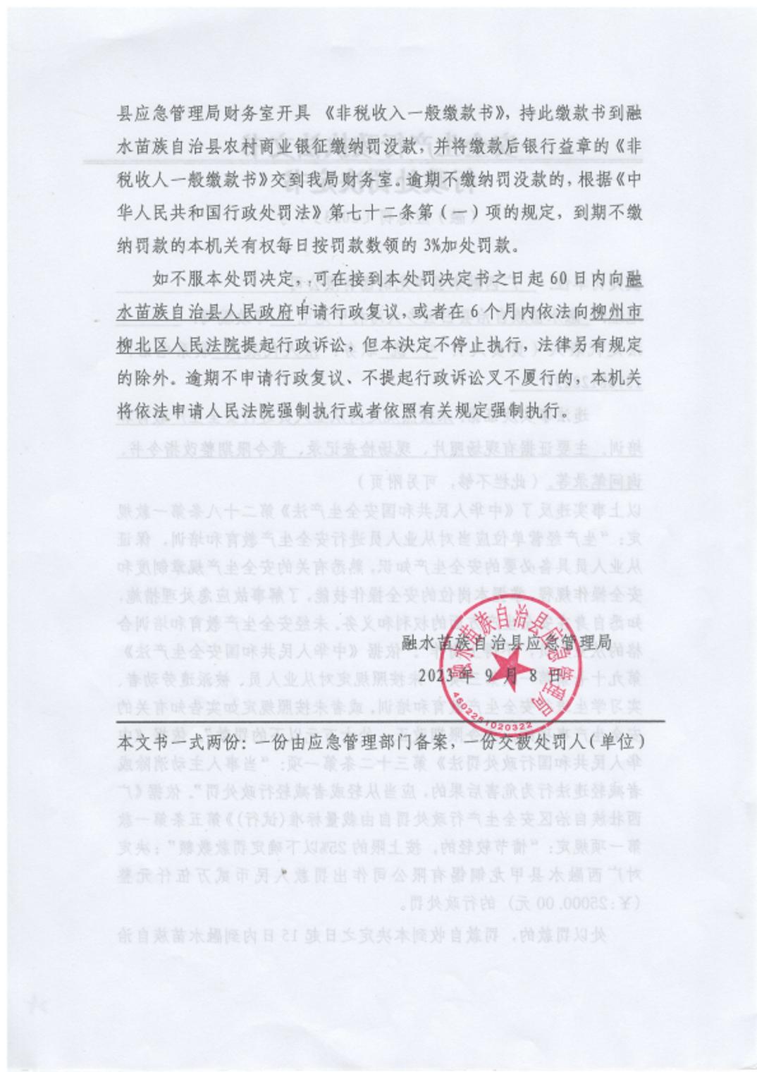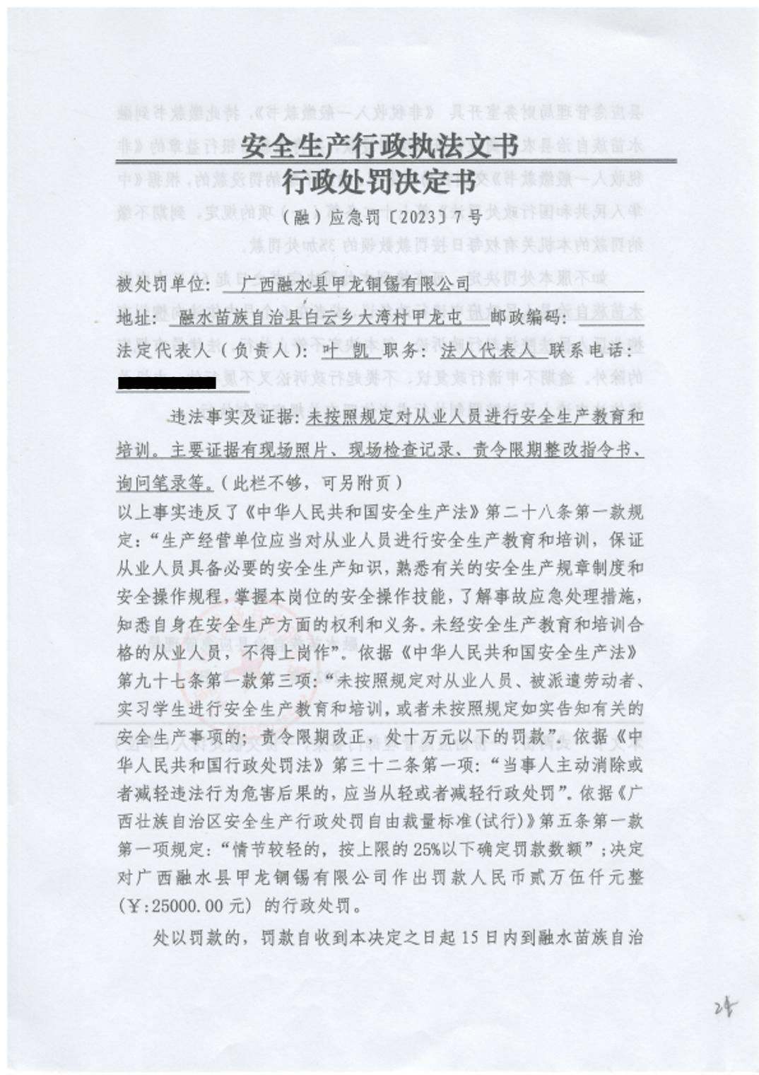 (融)应急罚〔2023〕07号-对广西融水县甲龙铜锡有限公司的行政处罚公示