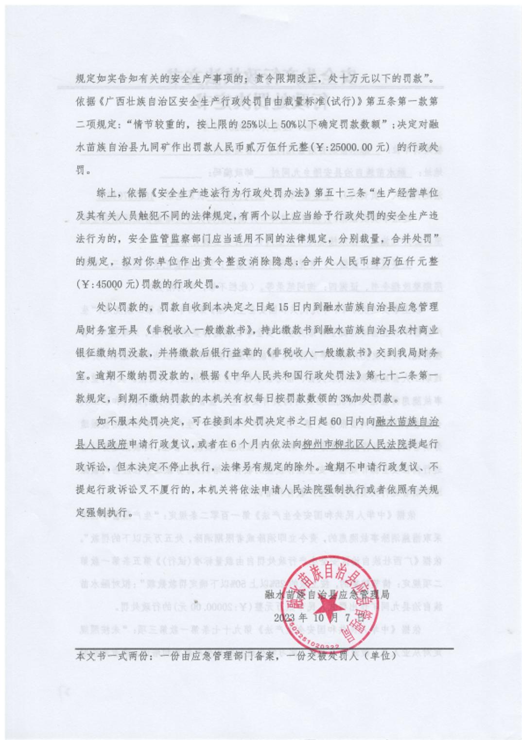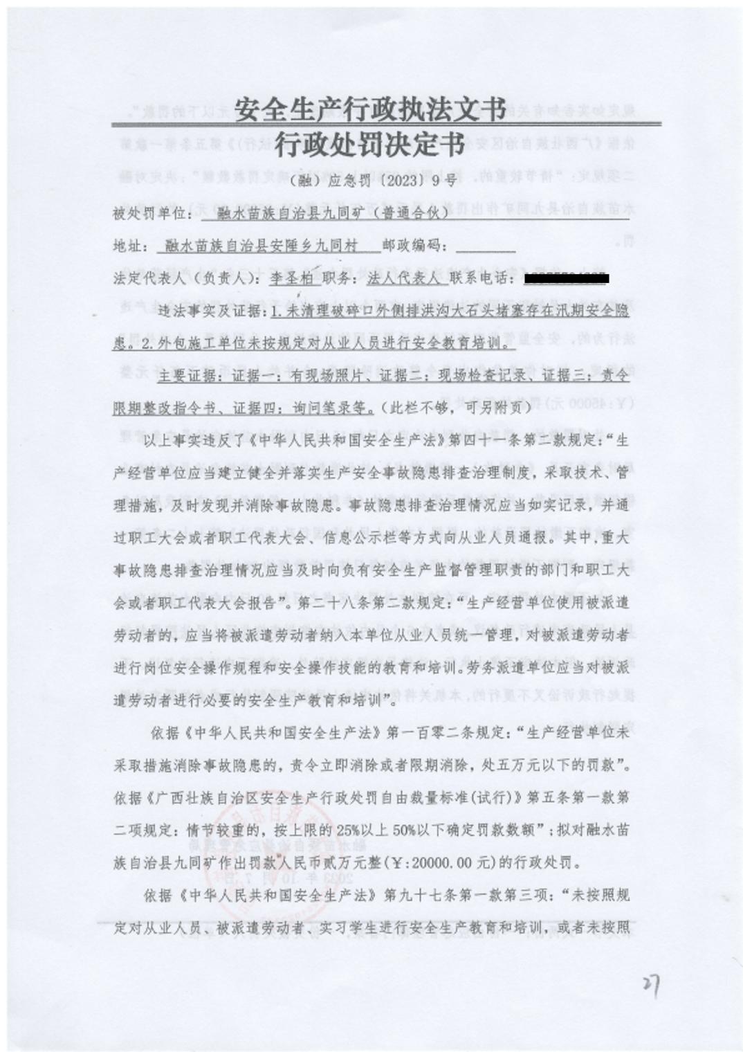(融)应急罚〔2023〕09号--对融水苗族自治县就铜矿的行政处罚公示