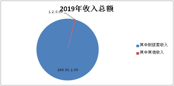 本年收入总计241.58万元 ,其中:财政拨款收入240.38万元;占99.5% ;上级补助收入0万元;事业收入0万元;事业单位经营收入0万元;其他收入1.2万元,占 0.5%。