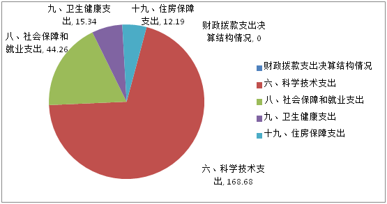 2019 年度财政拨款支出240.47万元,主要用于以下方面:科学技术支出(类)支出 168.68万元, 占70.15%;社会保障和就业(类)支出44.26万元,占 18.41%;卫生健康支出(类)支出15.34万元,占6.38%; 住房保障(类)支出12.19万元,占 5.06%。