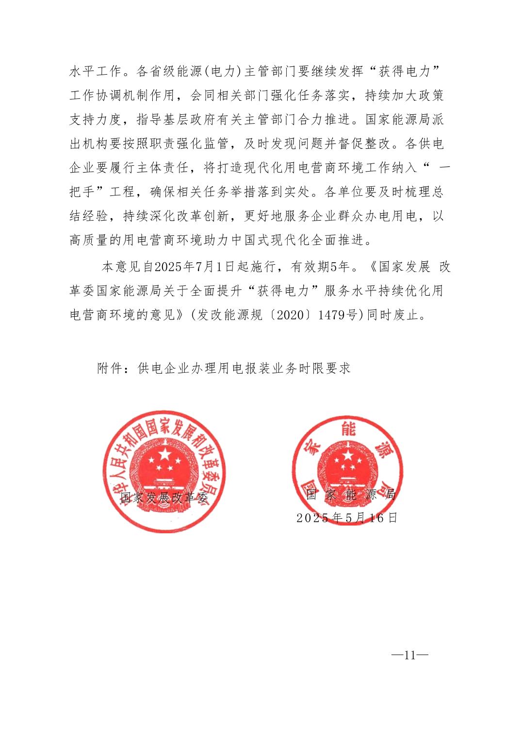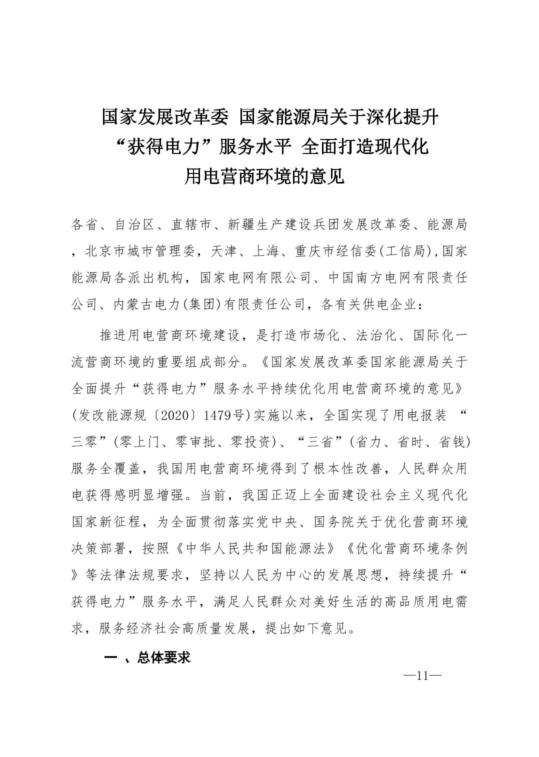 国家发展改革委 国家能源局关于深化提升“获得电力”服务水平 全面打造现代化用电营商环境的意见