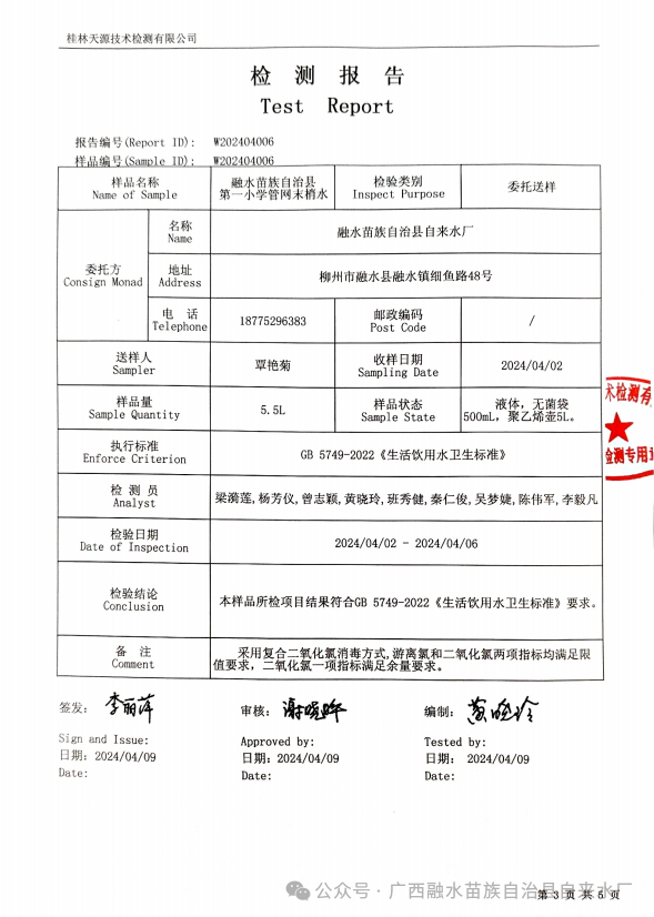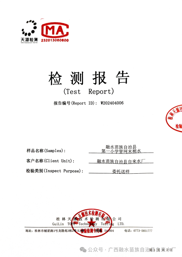 来源: 融水苗族自治县自来水厂  | 发布日期: 2024-04-24 09:00