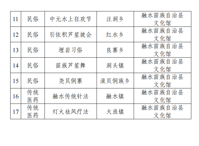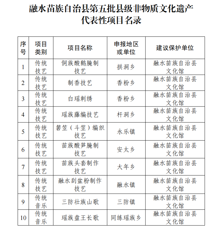 融水苗族自治县第五批县级非物质文化遗产 代表性项目名录