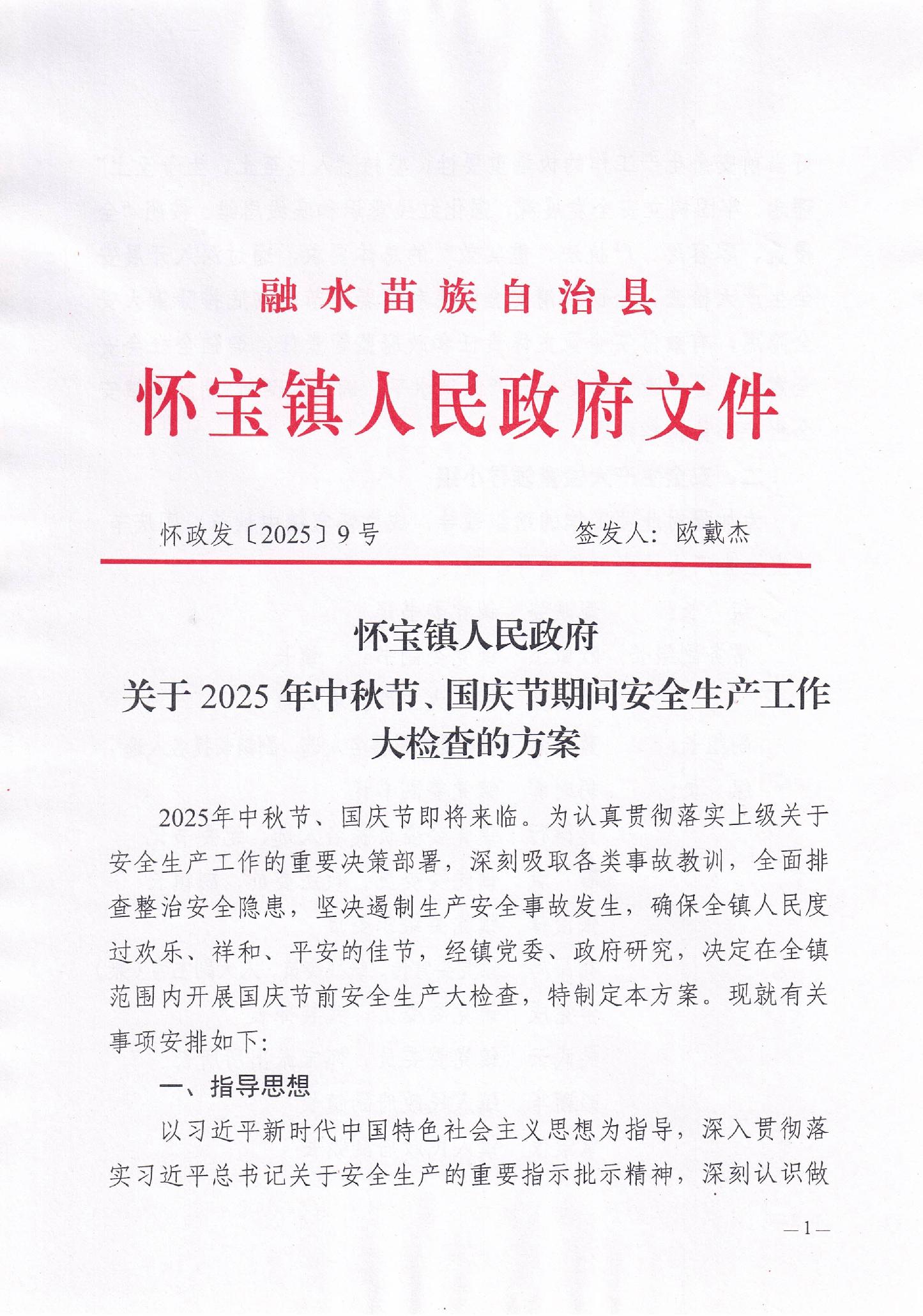 怀政发〔2025〕9号关于2025年中秋节、国庆节期间安全生产工作大检查的方案