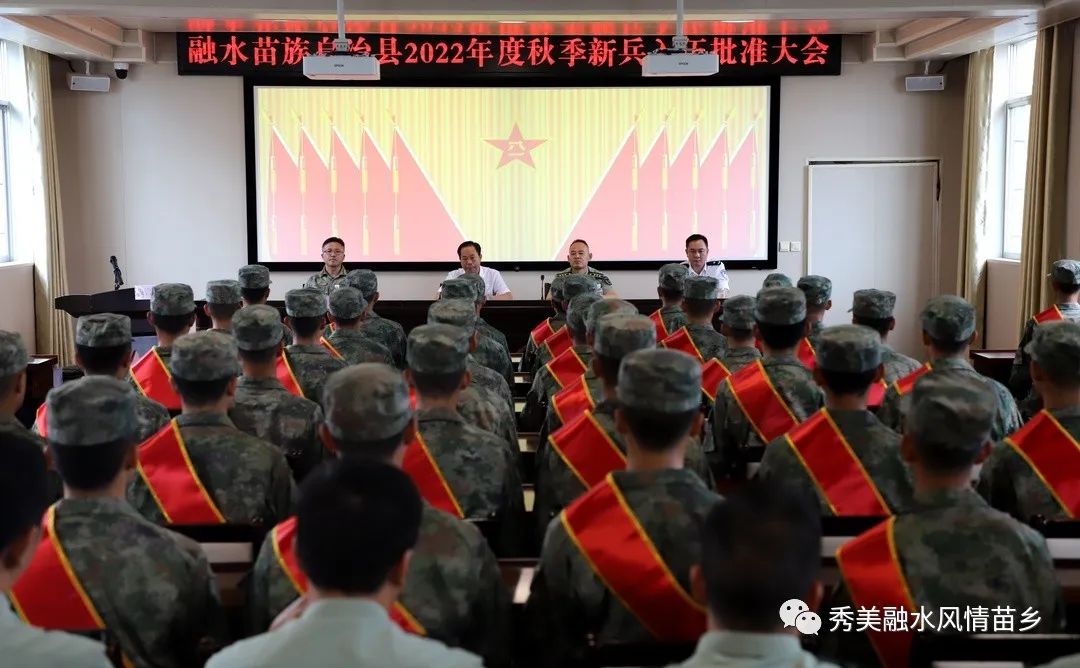 9月13日,融水苗族自治县召开2022年秋季新兵入伍批准大会,欢送即将踏入军营的优秀青年儿女。县领导韦贞强、吴志纯、于晓东、覃建恩出席会议。